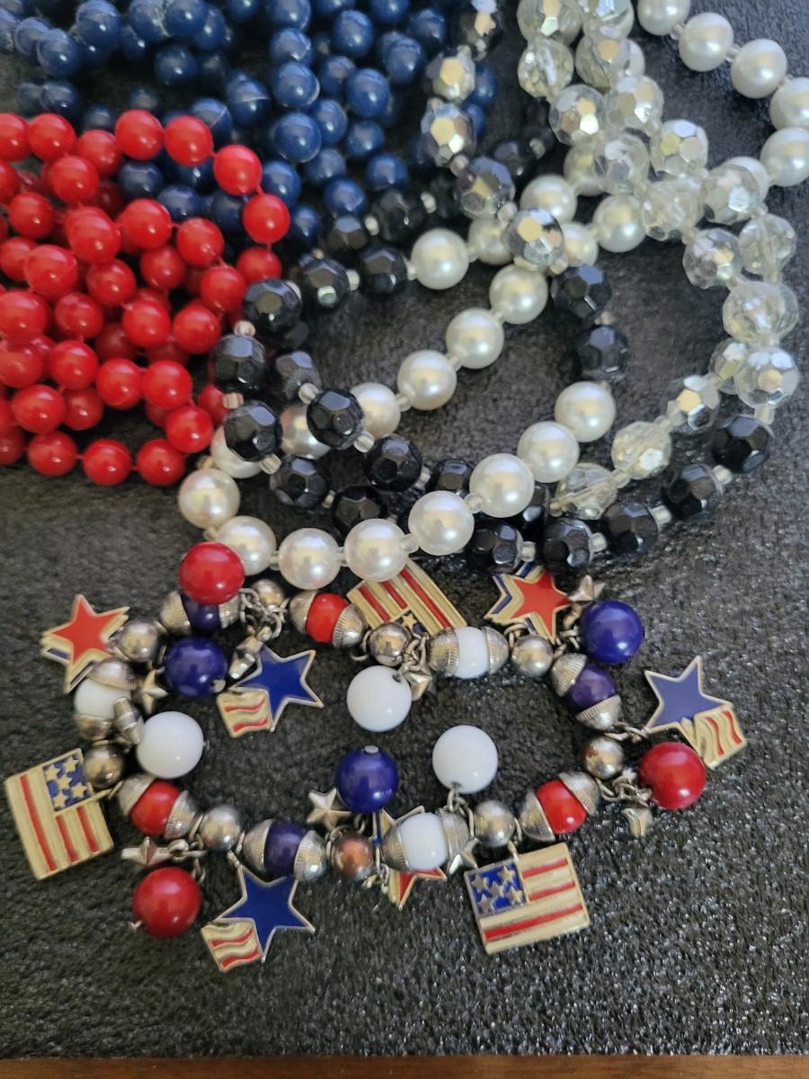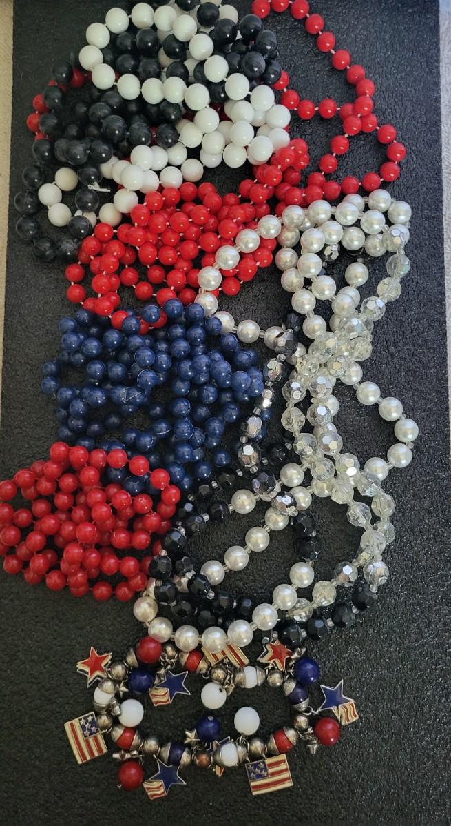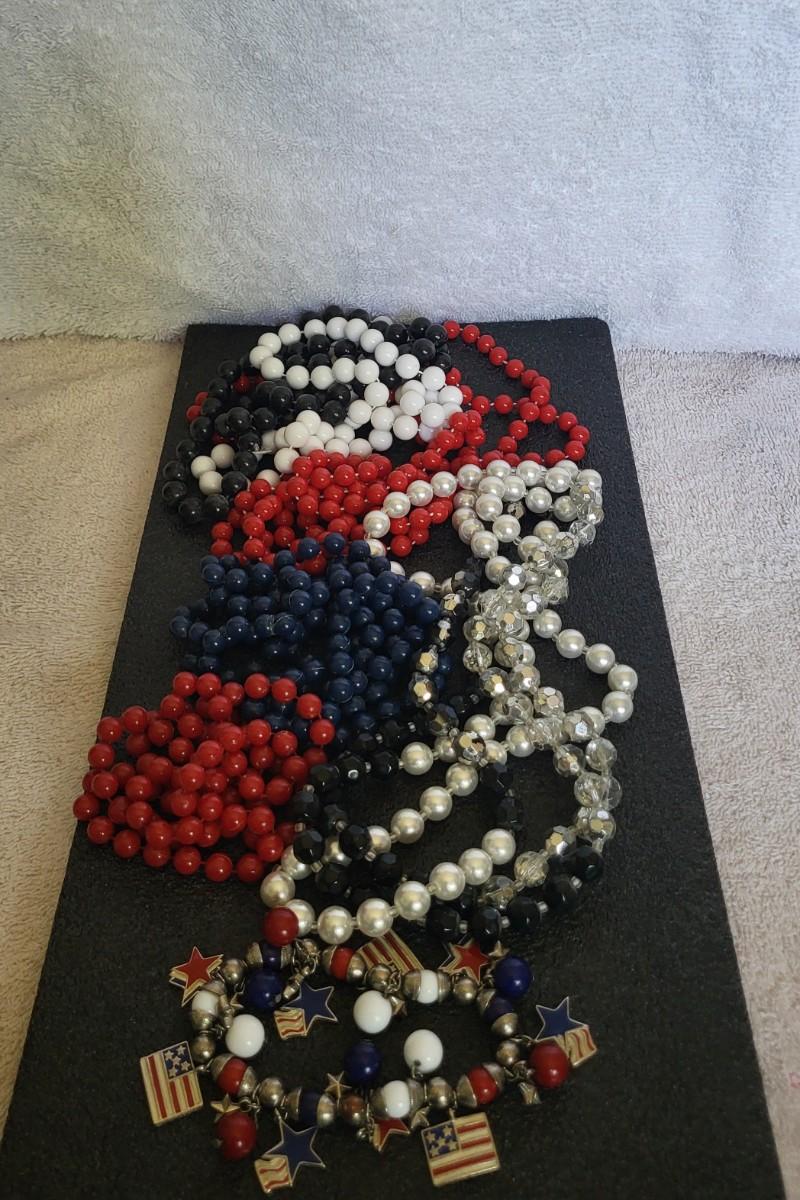 PATRIOTIC LOT OF BEADED NECKLACES AND BRACELET
