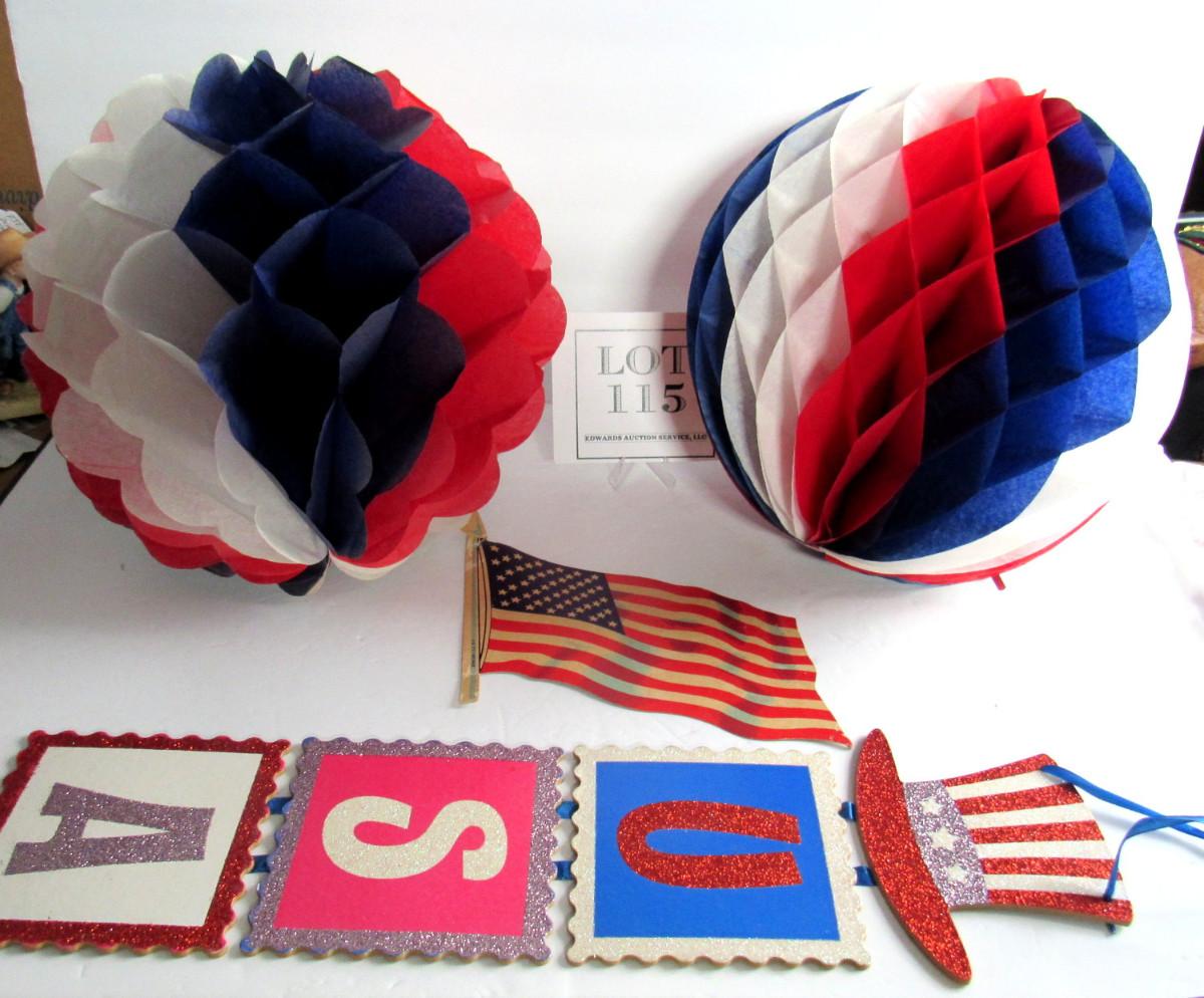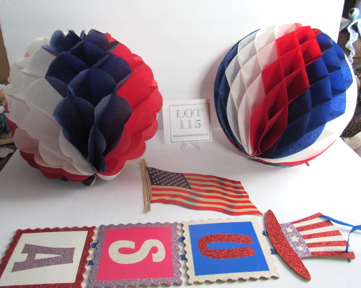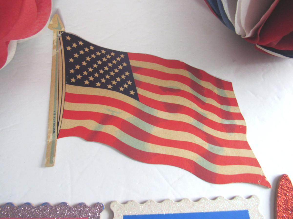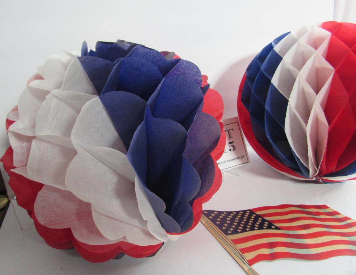Patriotic Lot of Tissue Balls, Dennison Flag Flat and USA Hanger