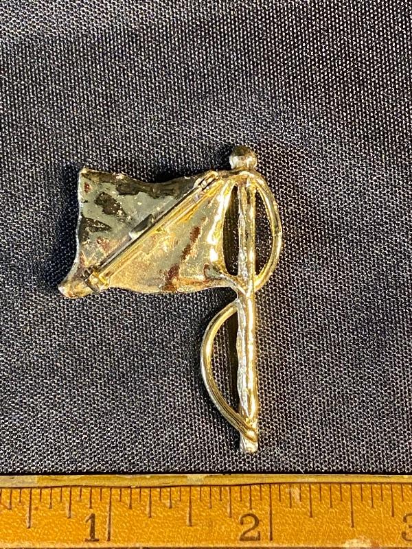 Patriotic red, white , and blue rhinestone flag brooch. Unmarked. included is the rhinestone Liberty bell, which unfortunately is broken, missing the pin part. Great for a craft or repair. No missing stones.