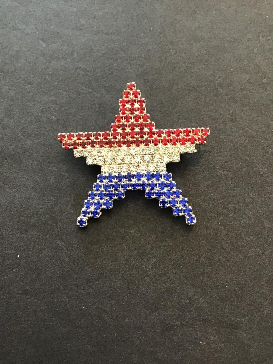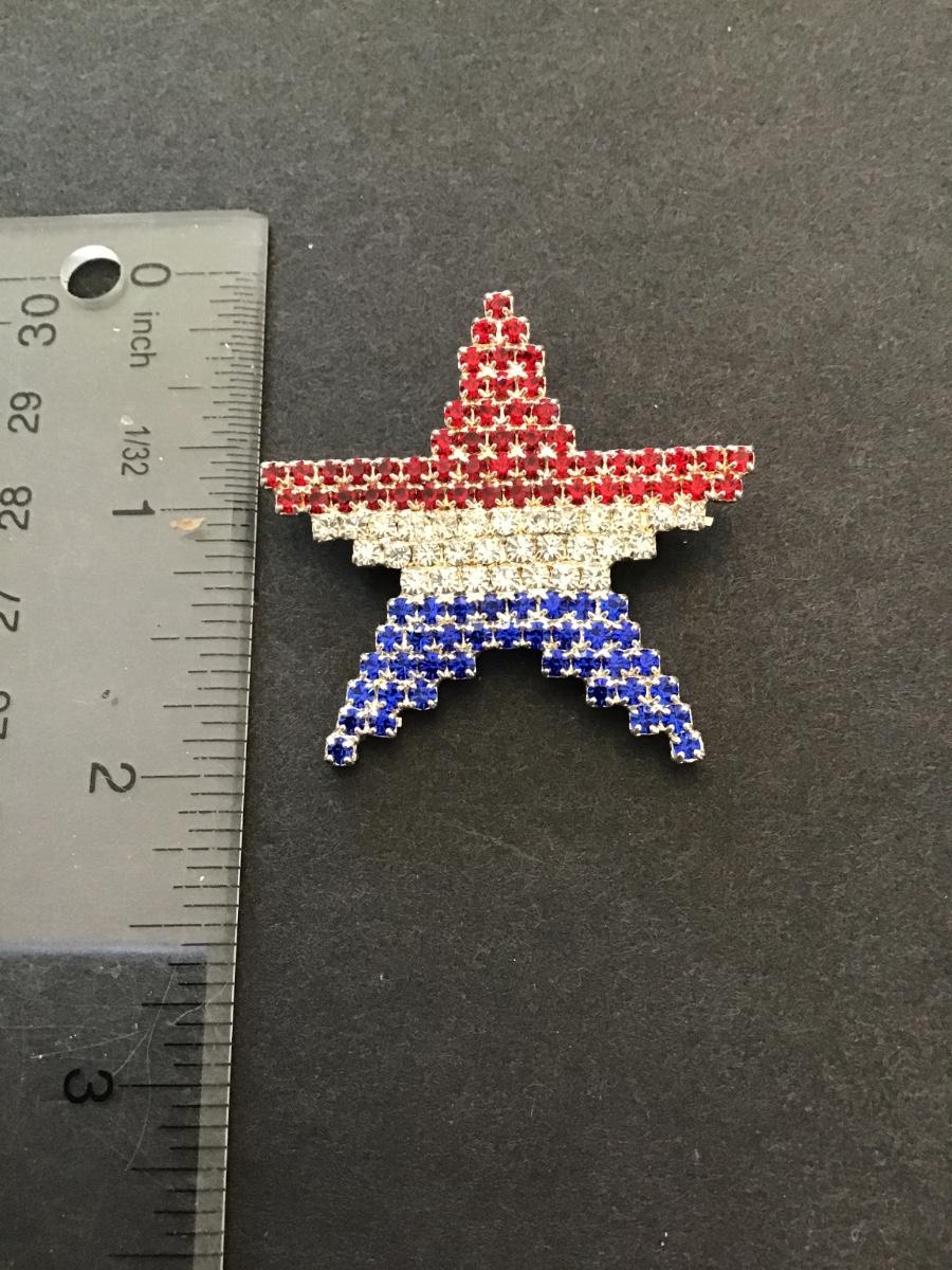 Red white and blue patriotic star brooch. Please see attached photos.