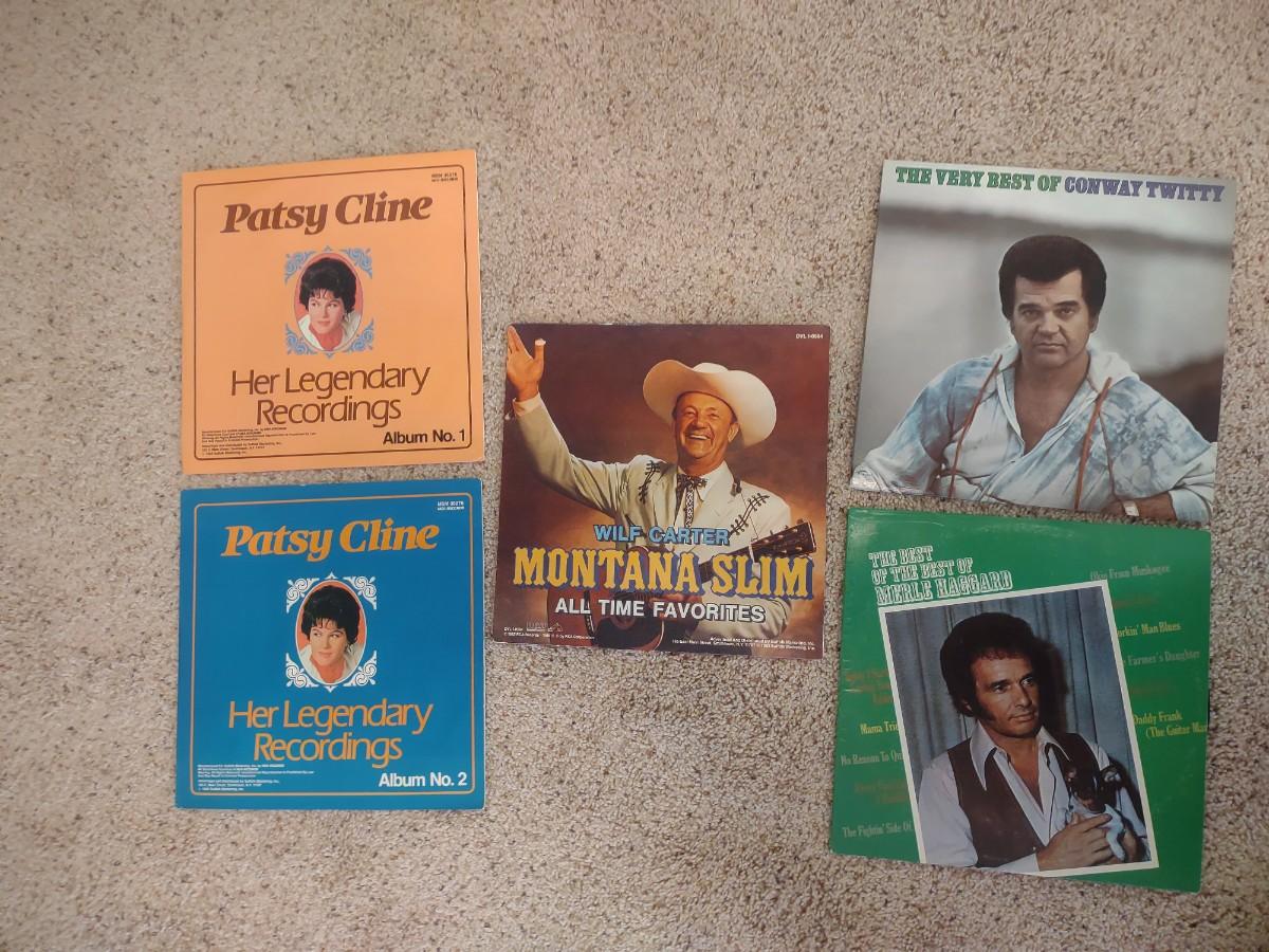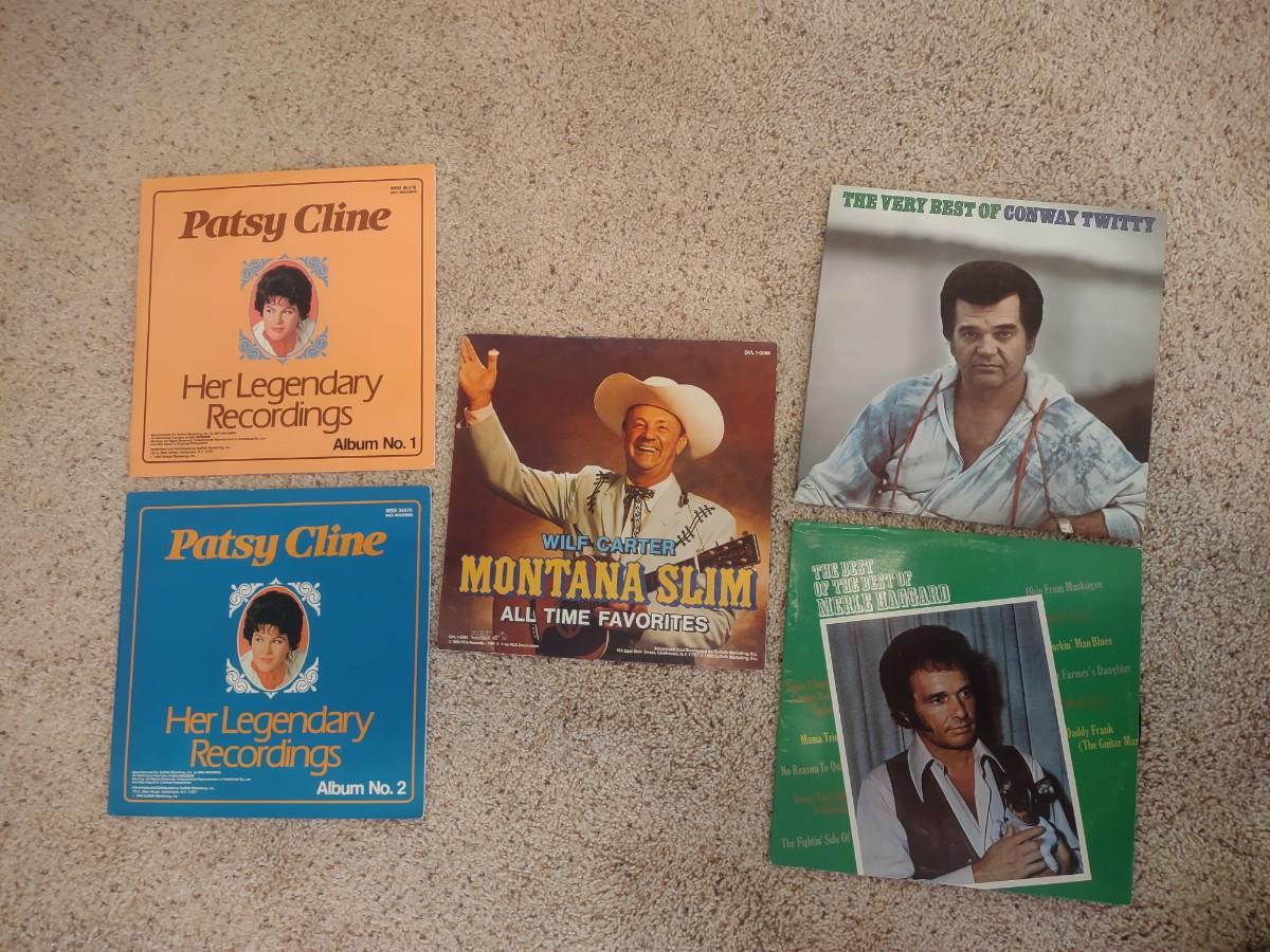 PATSY CLINE, CONWAY TWEEDY, MERLE HAGGARD AND MONTANA SLIM ON VINYL RECORDS
