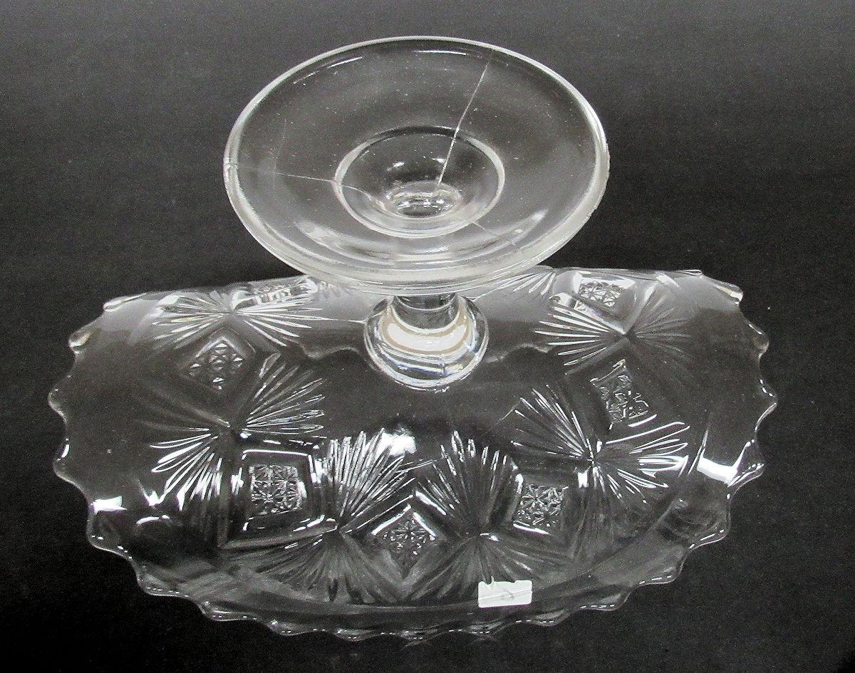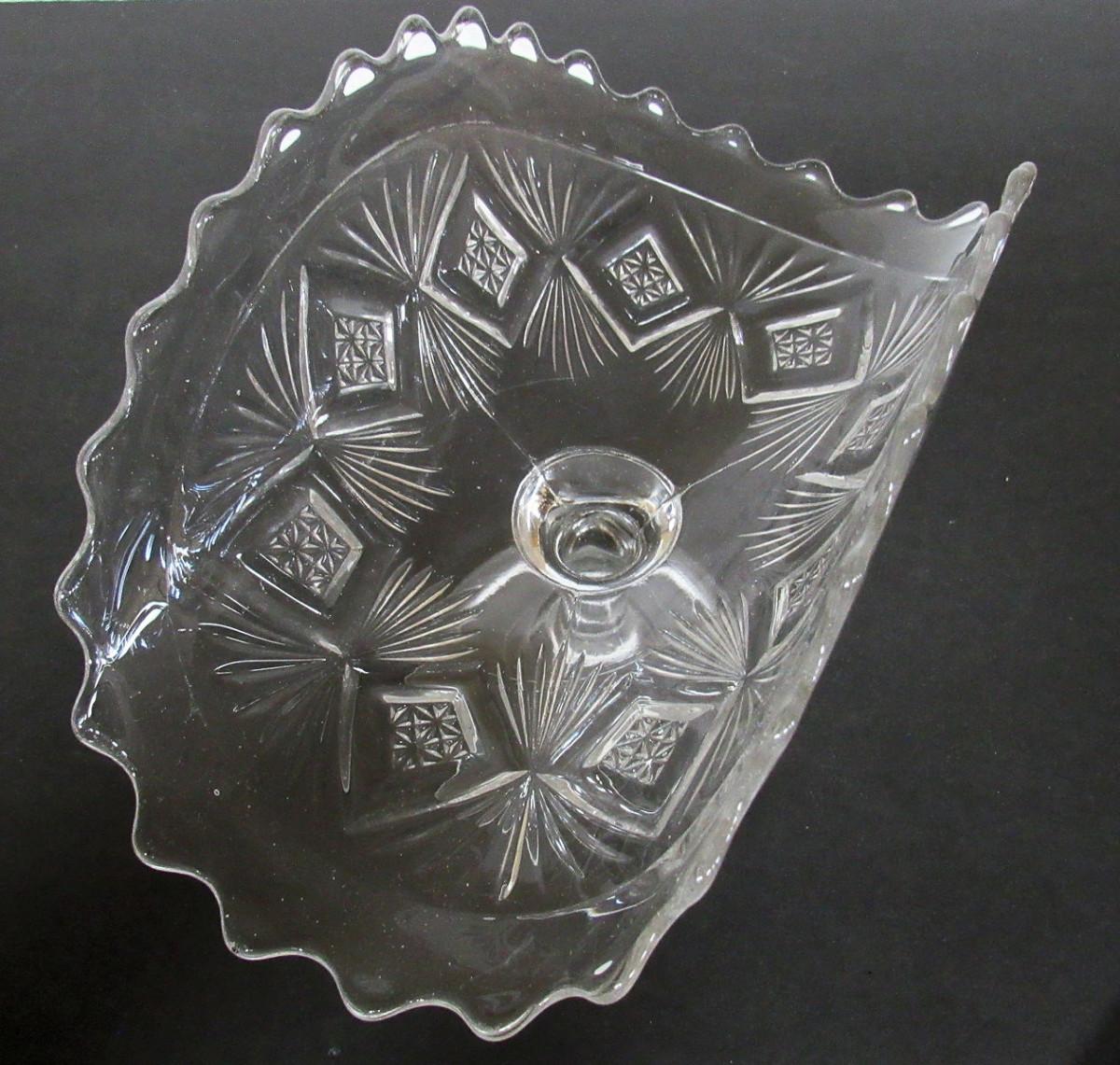 Very good condition with the usual mold marks and flaws. No chips or cracks. It looks like the diamond and sunburst pattern.