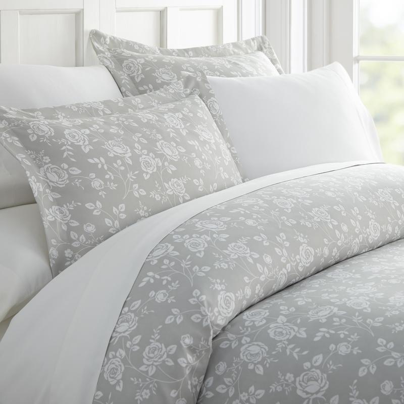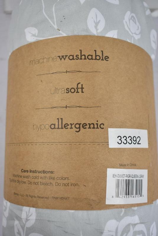 Patterned Duvet Cover 3 piece for Full or Queen, Gray with Roses, $29 Retail - New
