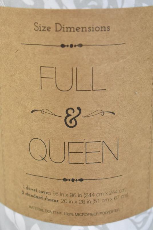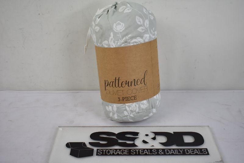 Patterned Duvet Cover 3 piece for Full/Queen, Gray with Roses, $29 Retail - New