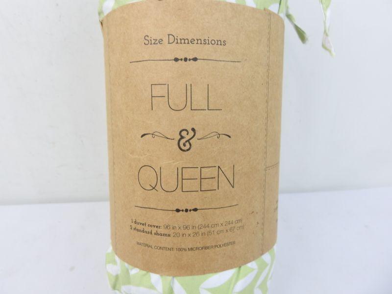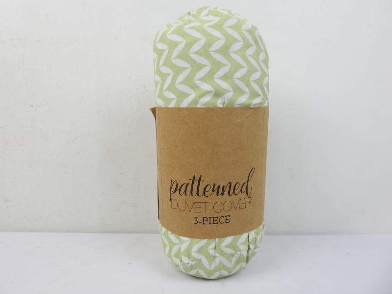 Patterned Duvet Cover, Sage Green, Full/Queen 3pc - New