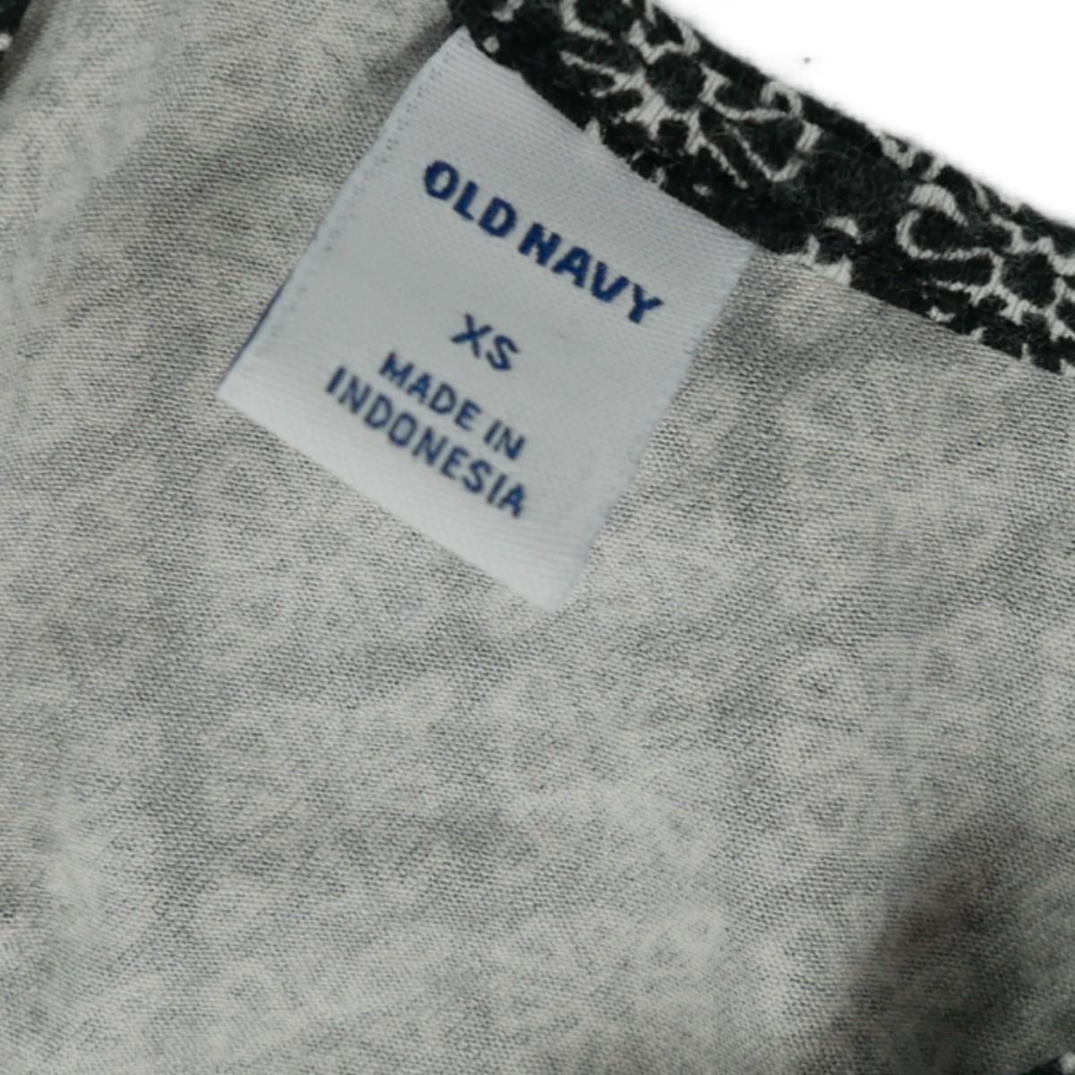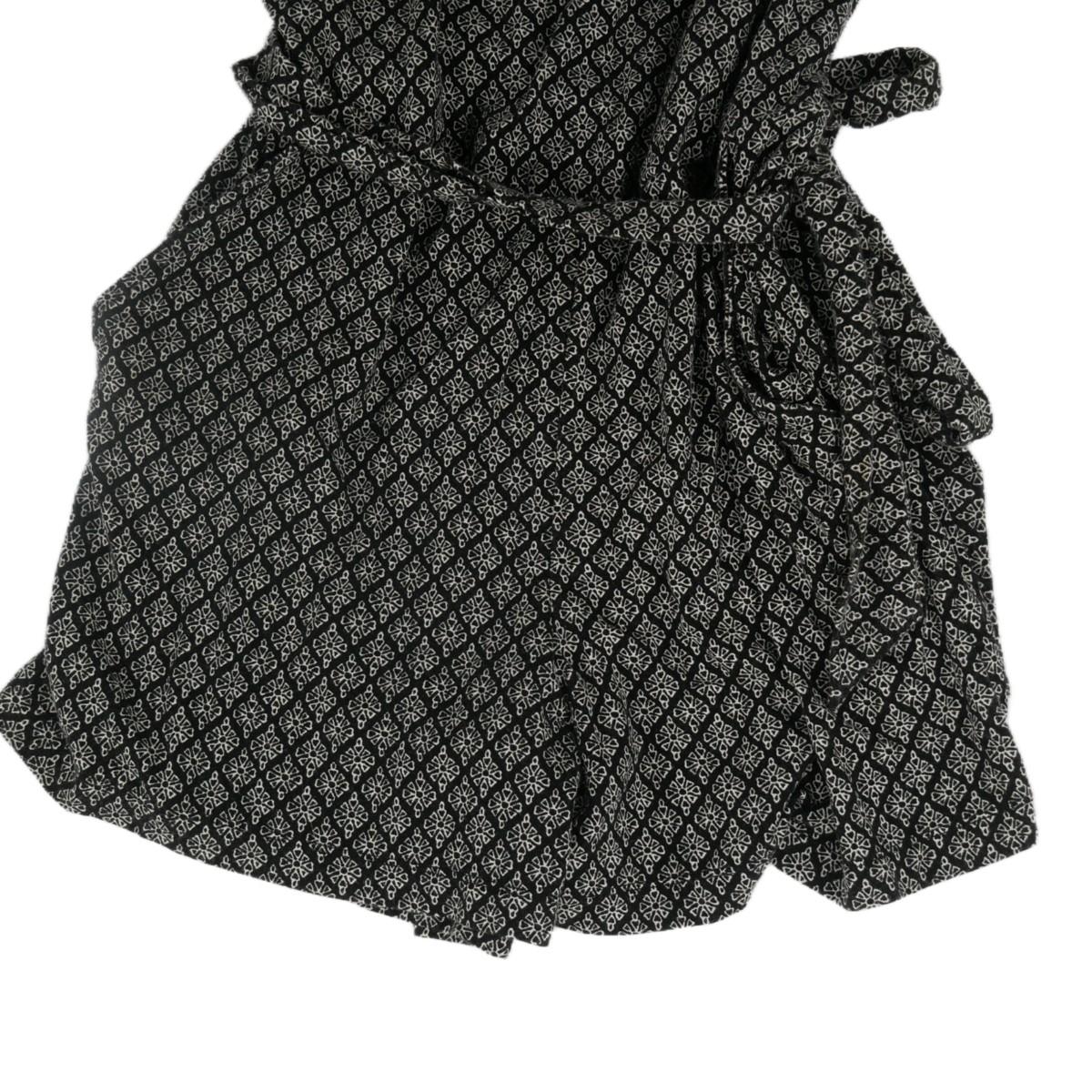 Black and white patterned romper with pockets and waist tie, women's size XS.