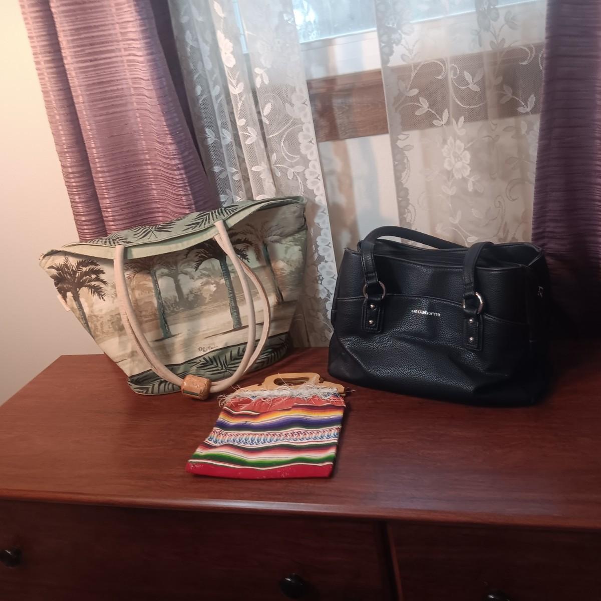 PAUL BRENT BEACH BAG, LIZ CLAIBORNE PURSE AND CLOTH WEAVED PURSE