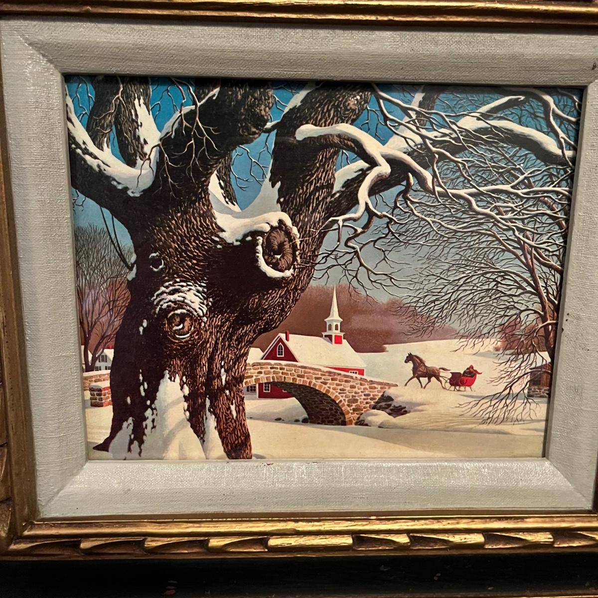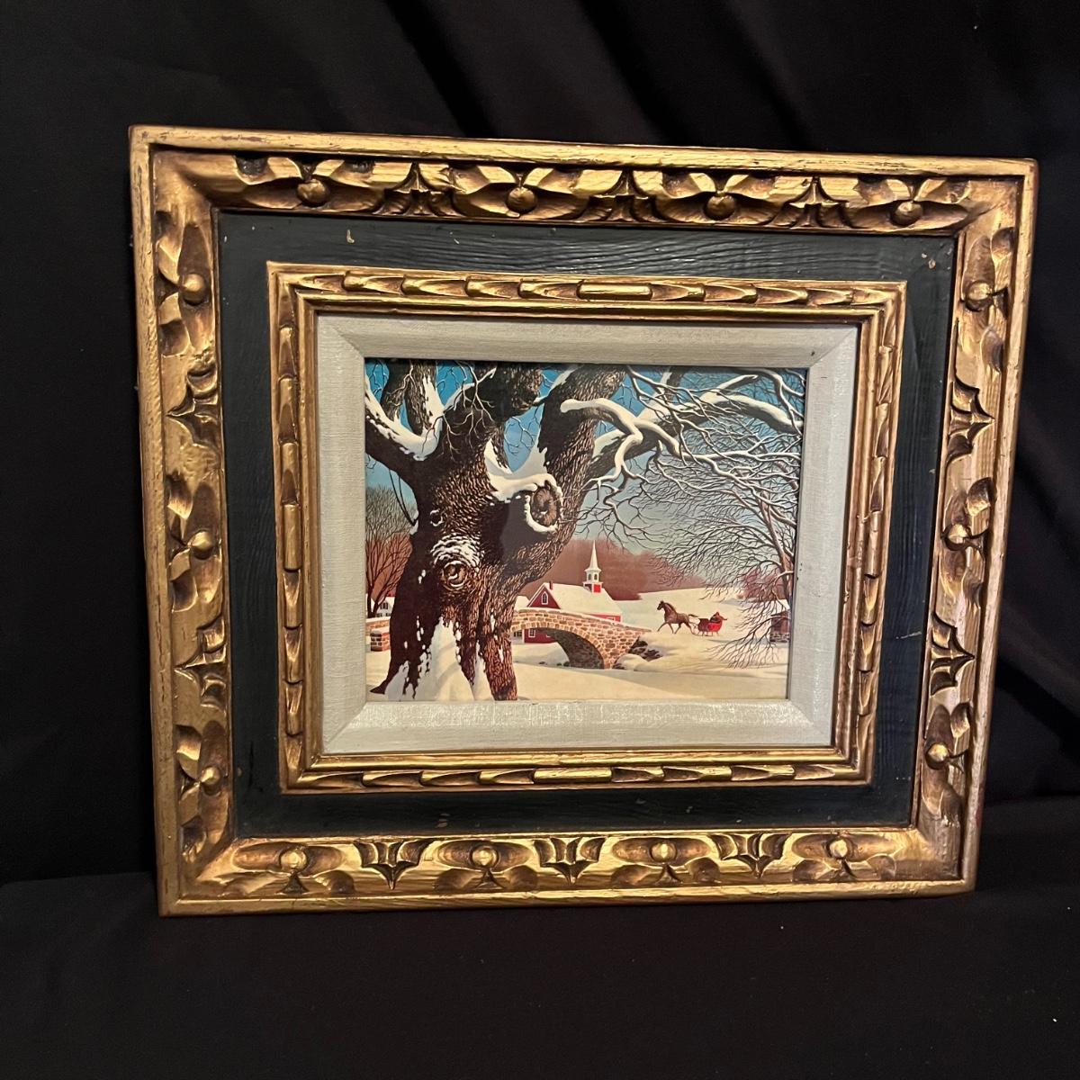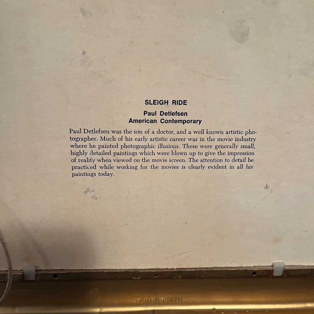 Lot includes a Paul Detlefsen framed print titled “Sleigh Ride” in a molded plastic frame. Frame measures 16” x 18” x 2”.