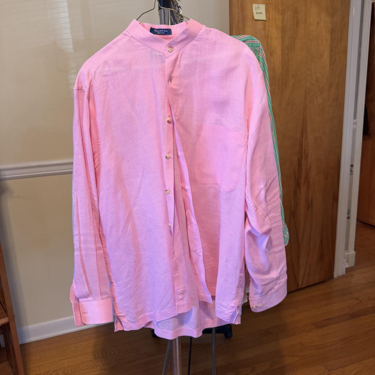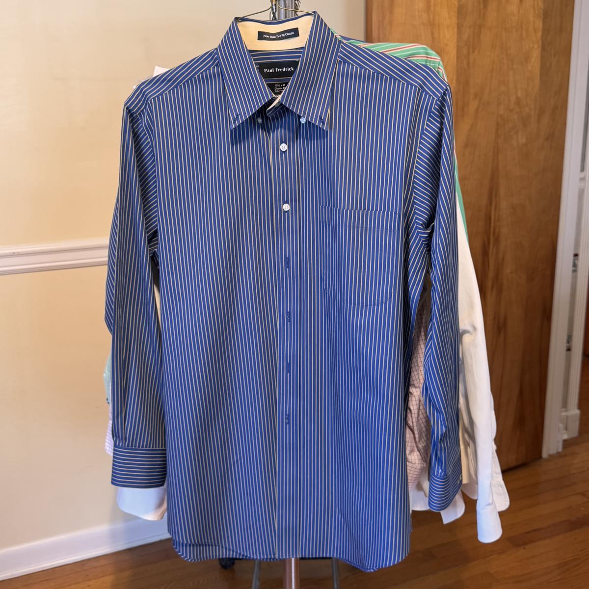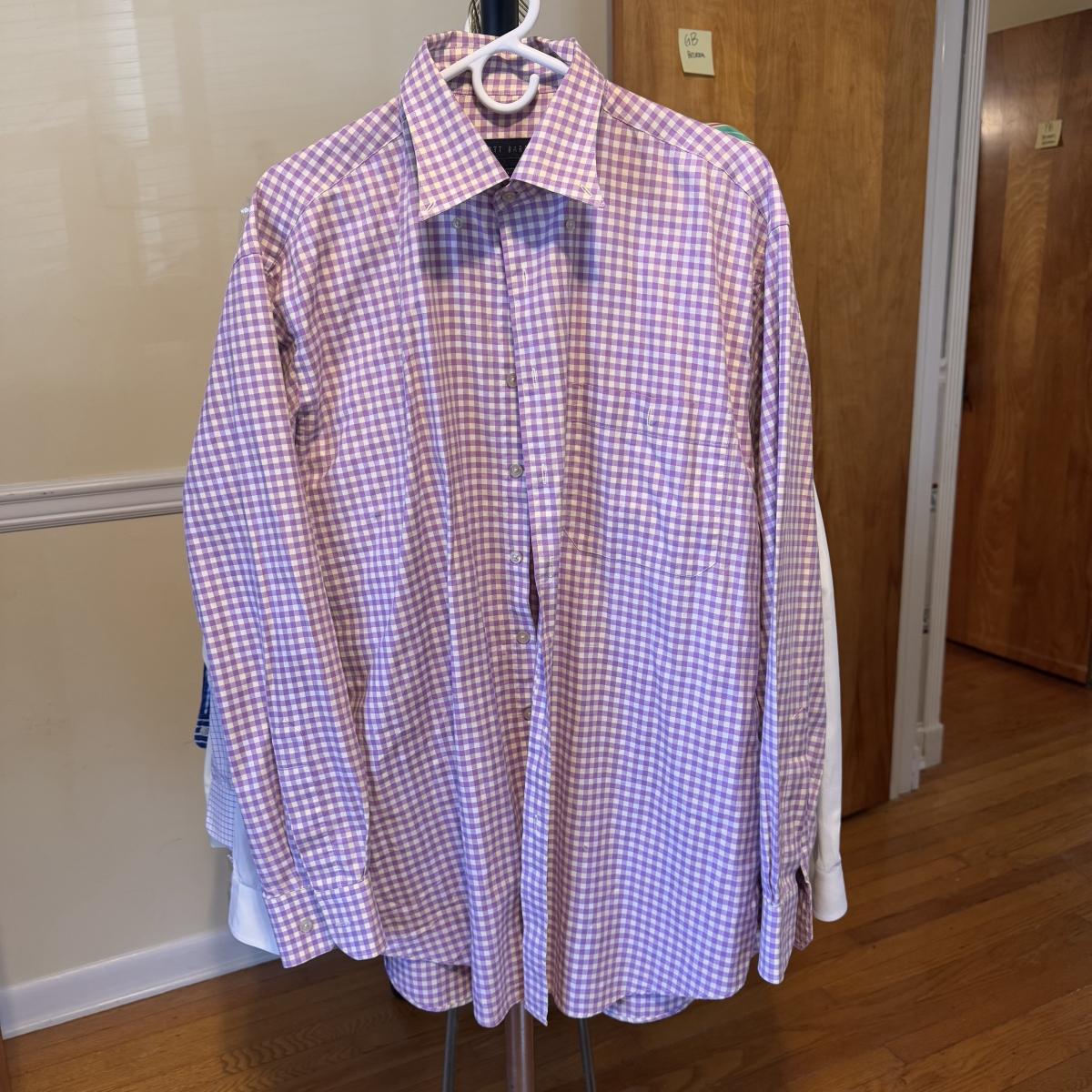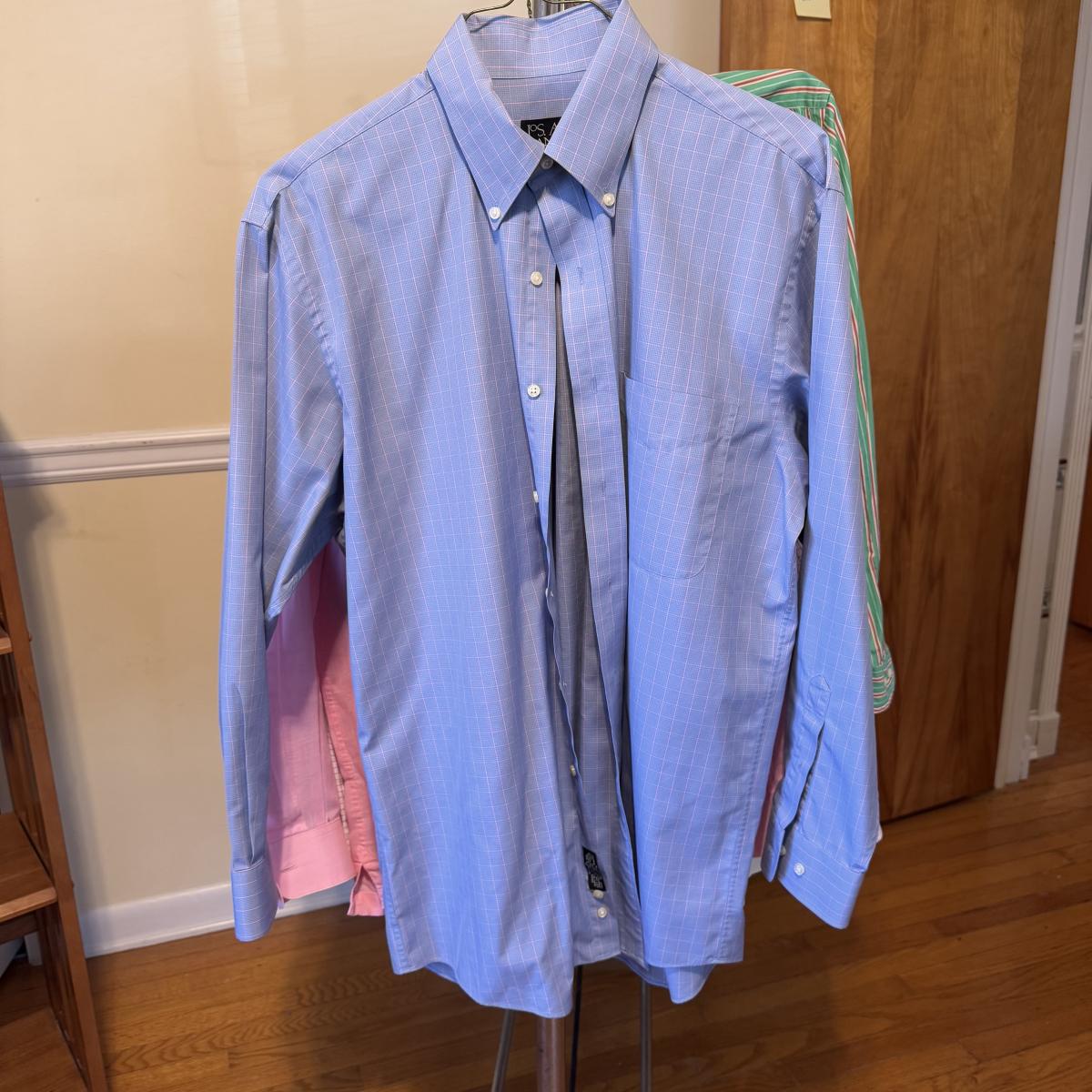Lot includes over thirty men’s long sleeve button-ups, all in size medium or large. You’ll find shirts by Paul Frederick, Tommy Hilfiger, Scott Barber, Jos. A. Bank, Daniel Cremieux, and more. Shipping available.