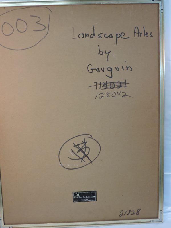 Vintage 1972 Paul Gauguin "Landscape Near Arles" lithograph on paper, some buckling that can be easily repaired. Print-17.5x23" Frame-21x28" **Please read Terms and Conditions before placing a bid. Pick up is by appoitment the following week in Mantua, New Jersey. Shipping is available at buyer's expense. All sales are final. All sales are as is, where is. Please review all photos. Any props included in photos are not included in listing. All measurements are approximate.