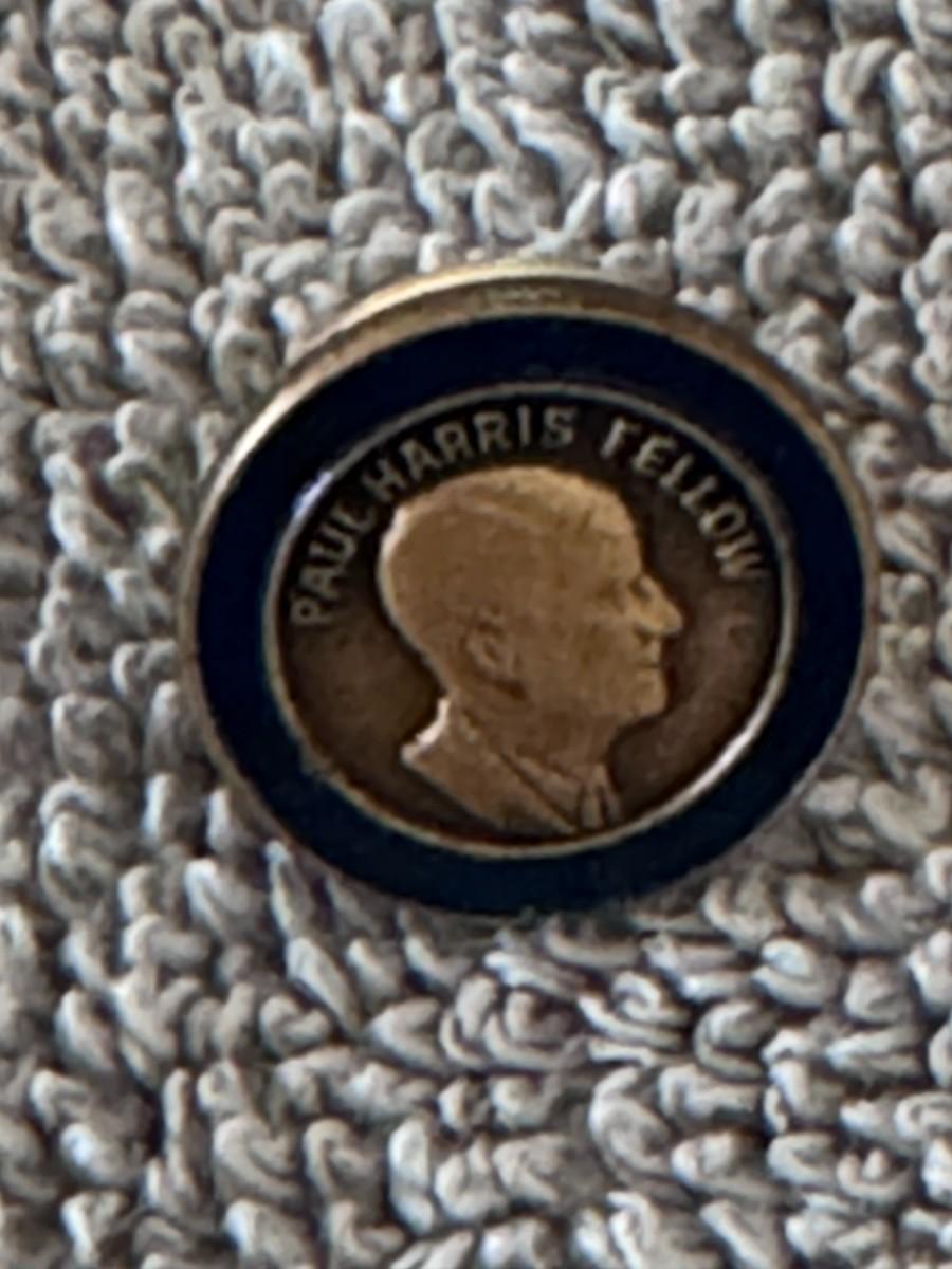 Paul Harris Fellow pin, a recognition awarded by Rotary International.