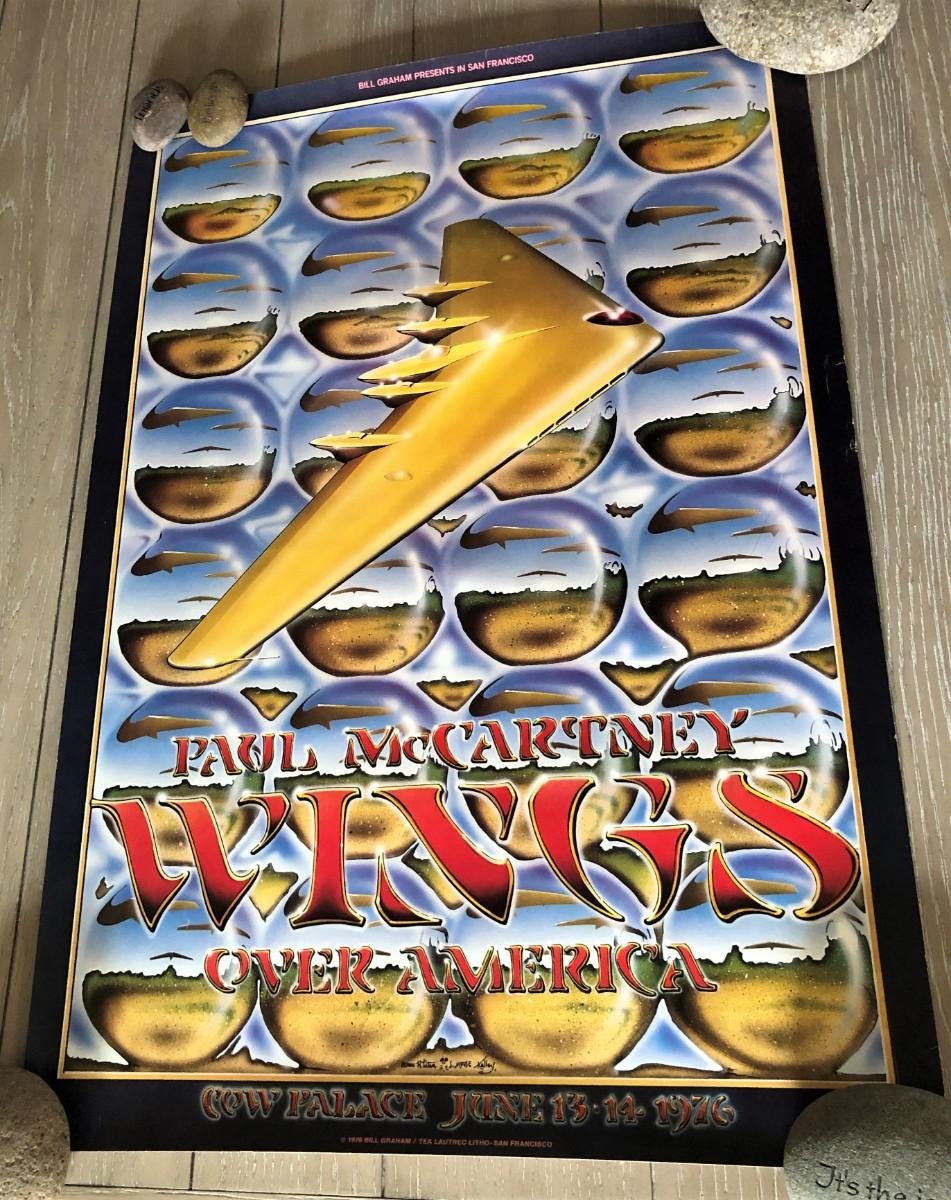 1976 Paul McCartney Wings Over America Concert Poster. Very good condition, with some damage on the sides.