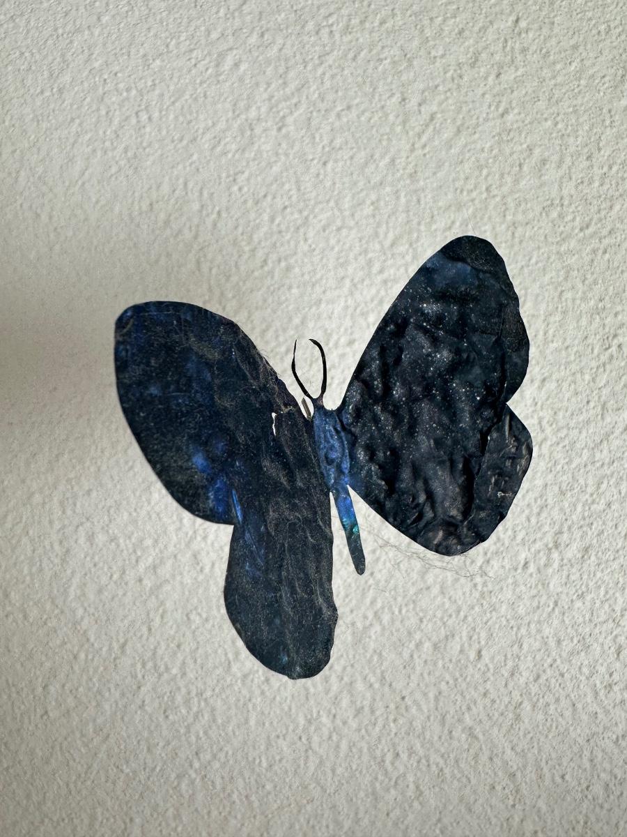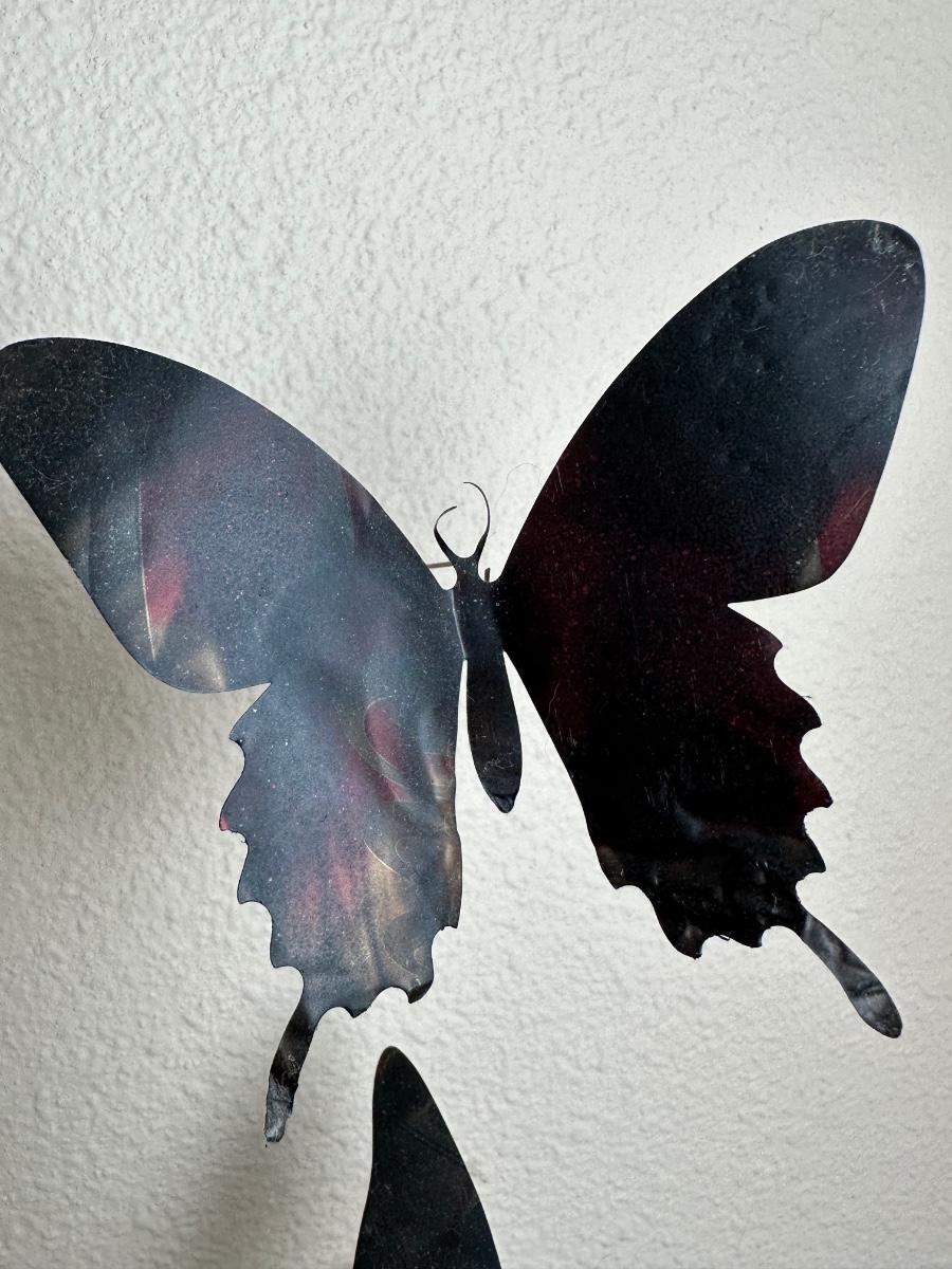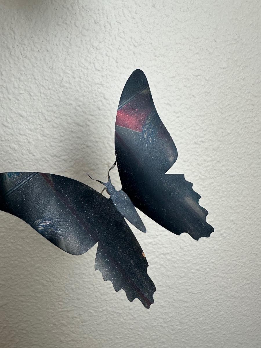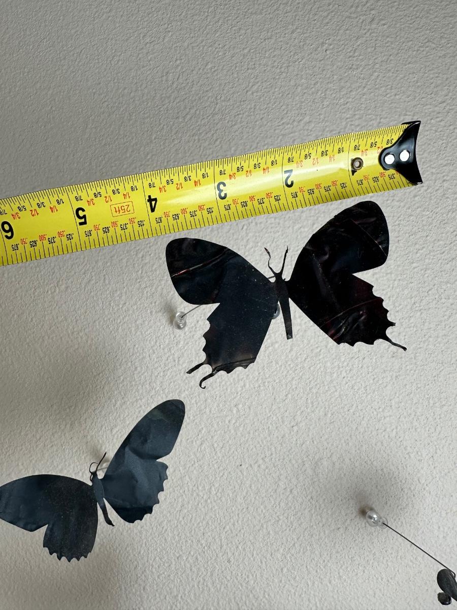 “I am drawn to humble, yet evocative materials; in this case, crushed aluminum cans from the streets of New York - every one of them once raised to someone’s lips. My process of “recycling” them into images of butterflies is a quiet physical meditation, a yoga of tin snips and files and fingers. As the butterflies alight on the walls of my studio, they lead into an exploration of formal, painterly issues. They function both as marks in these abstract, three-dimensional “paintings,” and as actors in curious narratives. Finally, the butterflies operate symbolically, and I try to develop a conceptual unity between materials, process, and imagery: metamorphosing littered beer cans into flocks of butterflies mirrors the act of transformation and rebirth that symbolize across all cultures.” - Paul Villinski