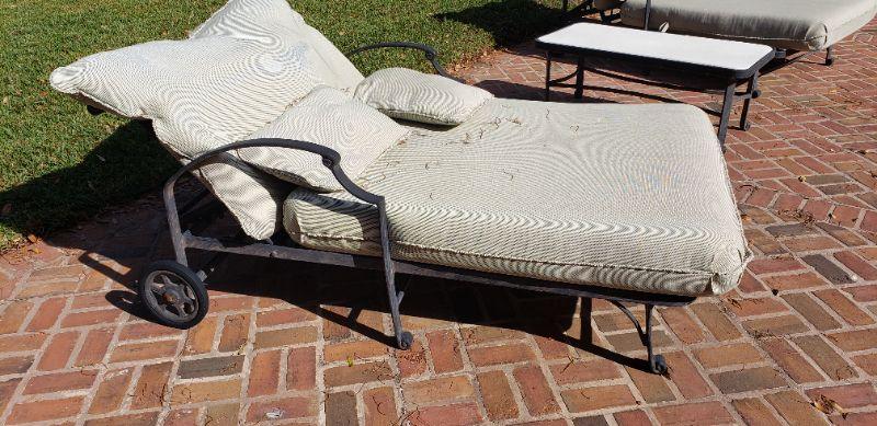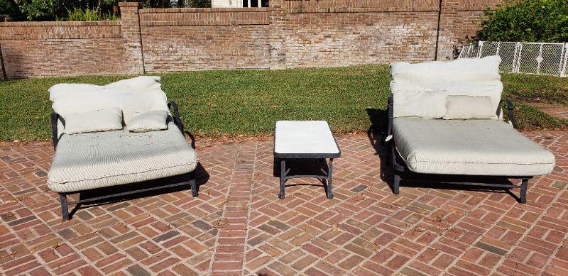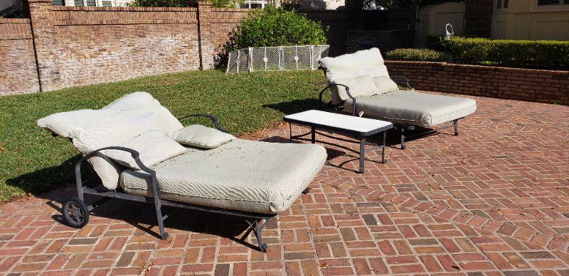 Pavilion Portico Collection 2 Double Chaises Loungers with Table