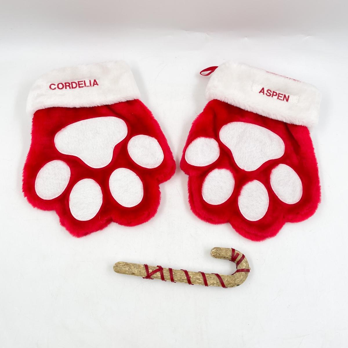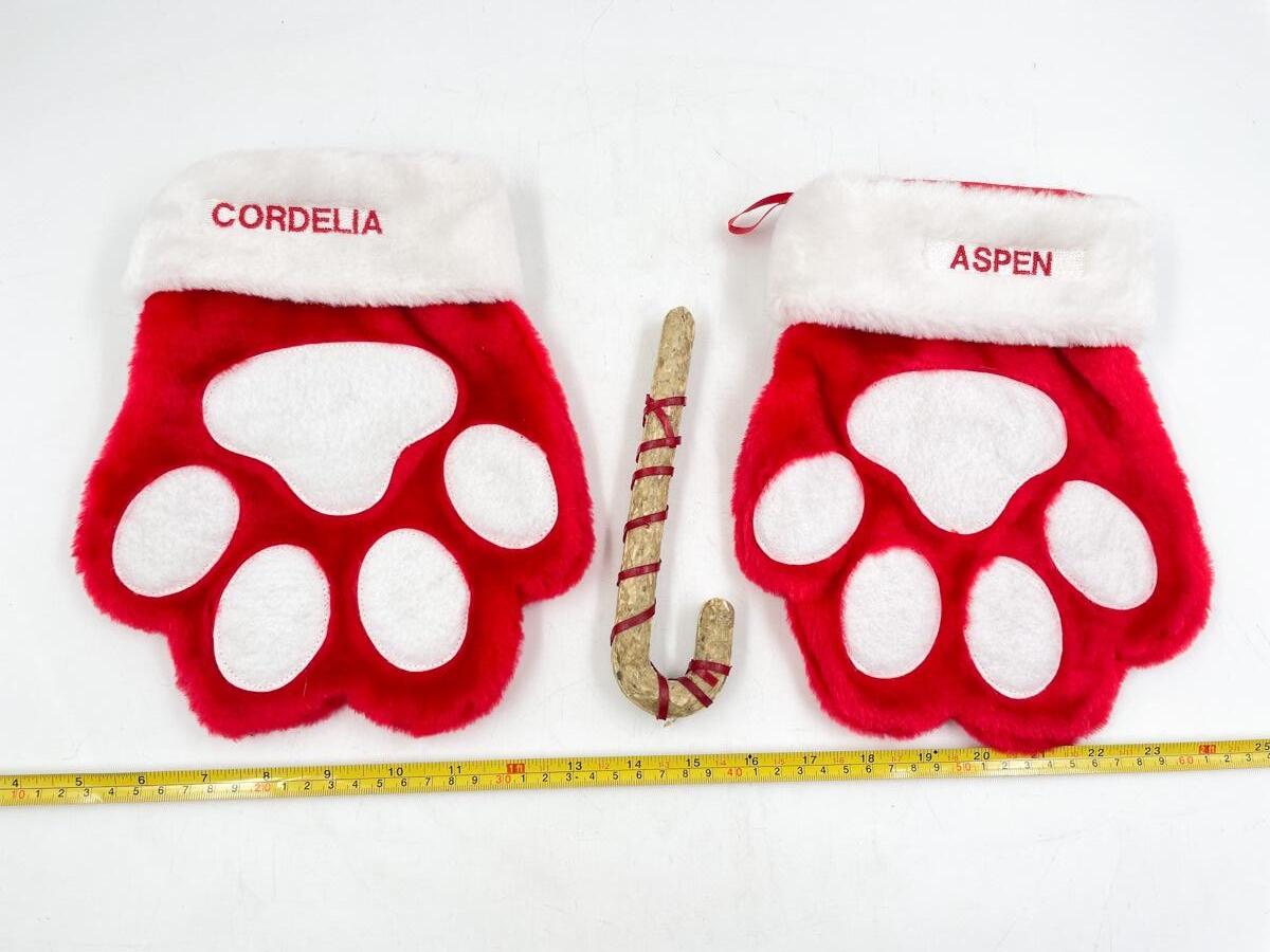 PAW CHRISTMAS STOCKINGS AND CANDY CANE DOG TREAT