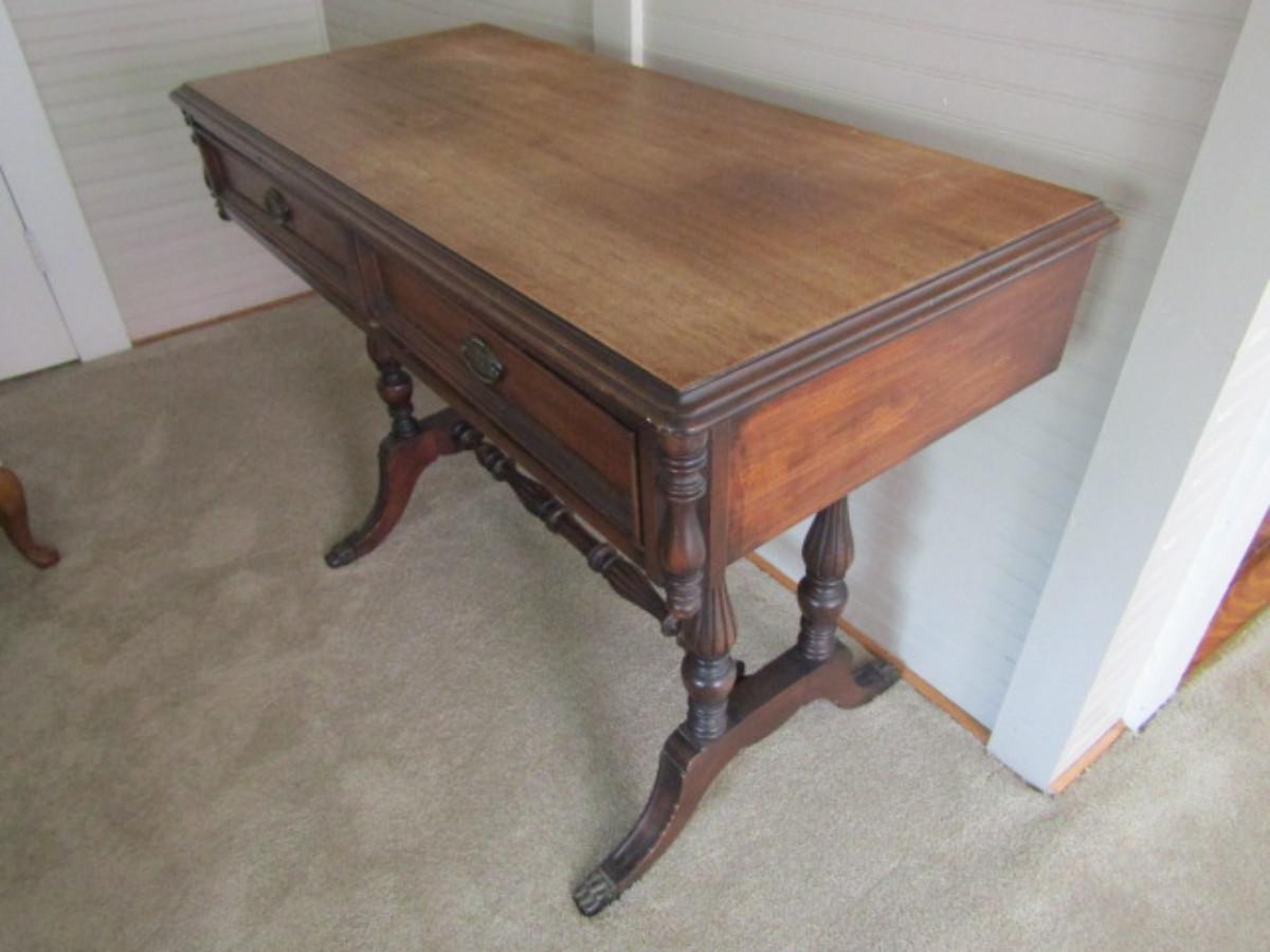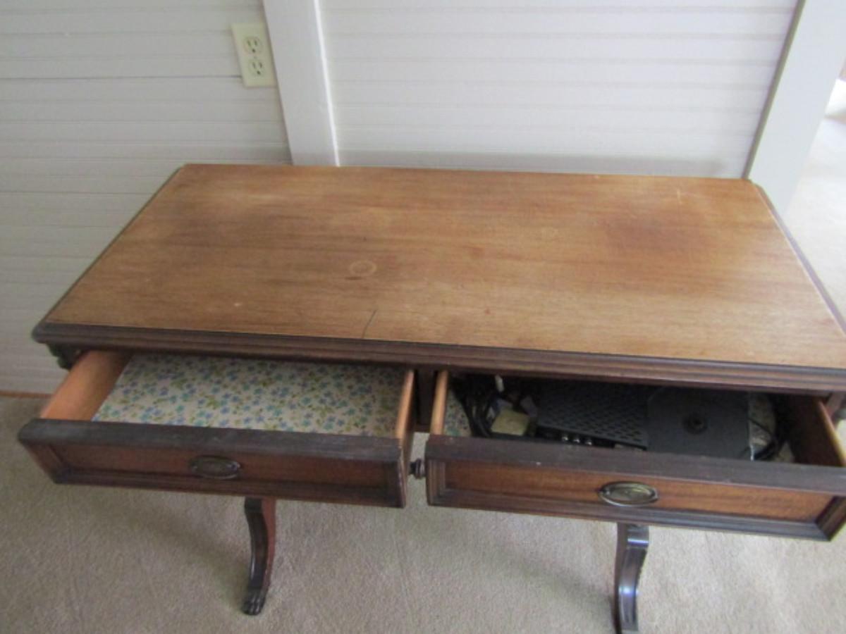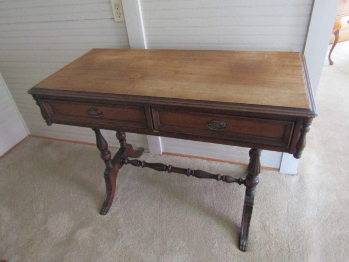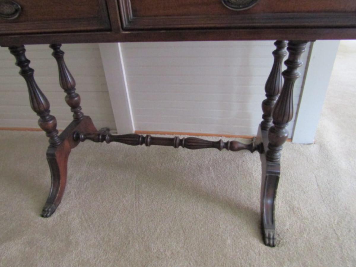 Paw Foot Dovetailed Solid Wood Double Drawer Writing Desk. Item is upstairs.