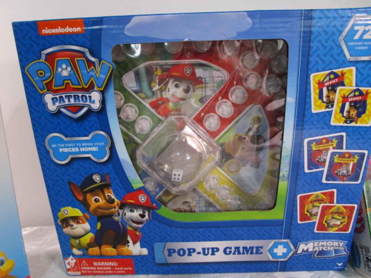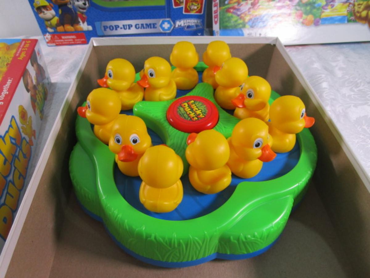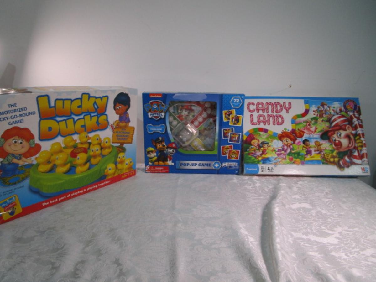 Paw Patrol pop-up game, Candy Land, Lucky Ducks games