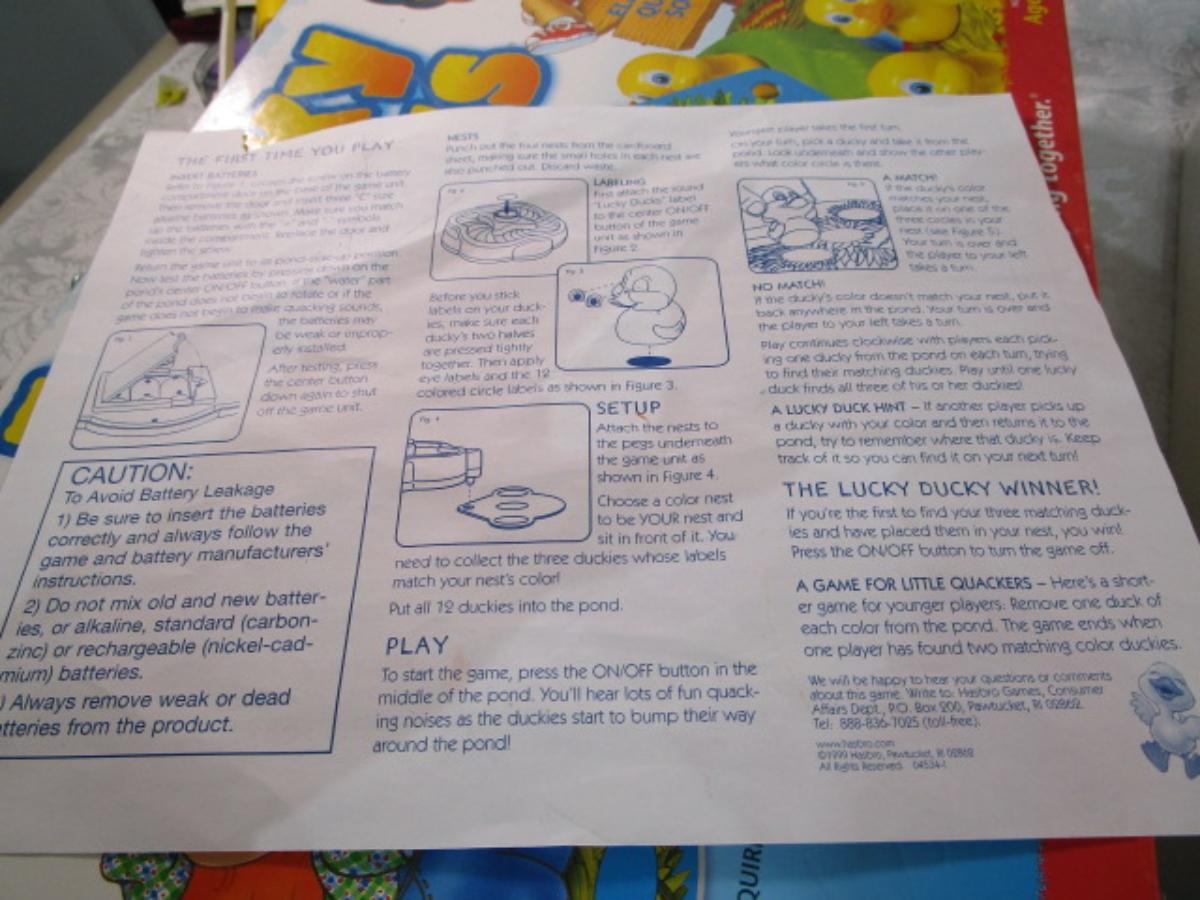 Lucky Ducks game takes 3 C batteries not included, See pictures