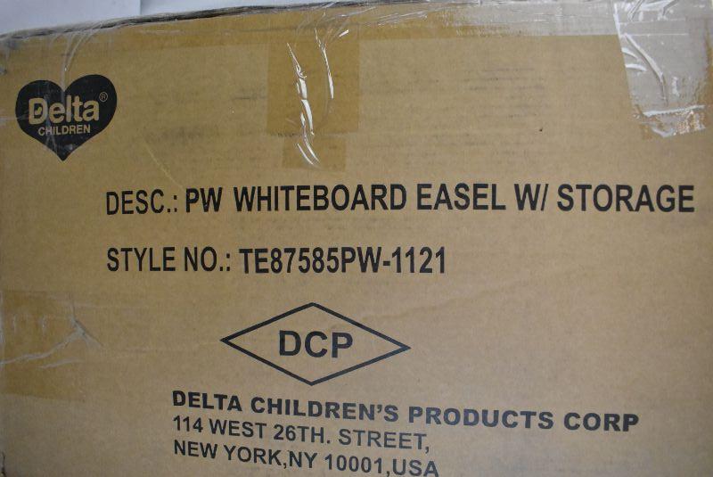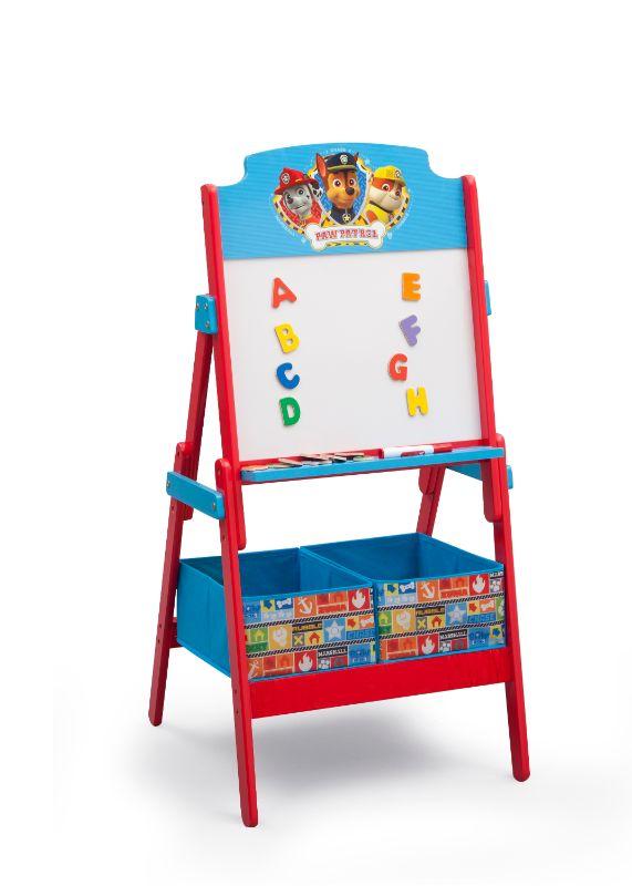 Paw Patrol Red/Blue Delta Children's Whiteboard Easel w/ Storage. Cracked shown