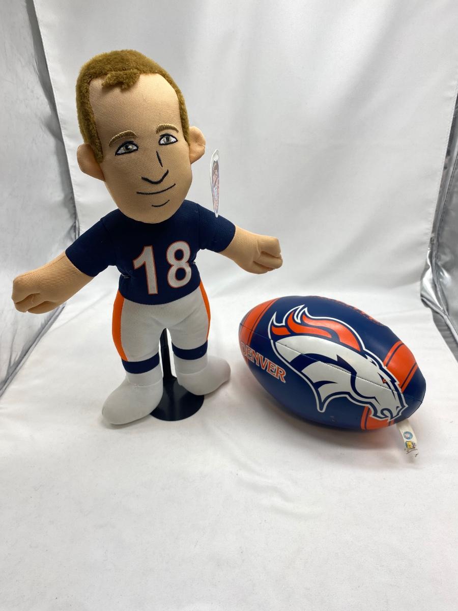 PEYTON MANNING DOLL AND BRONCO FOOTBALL