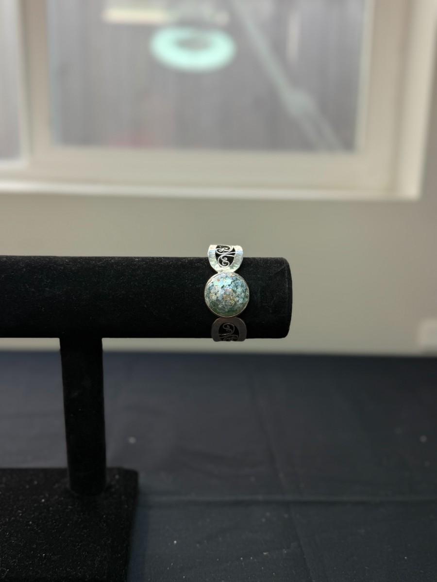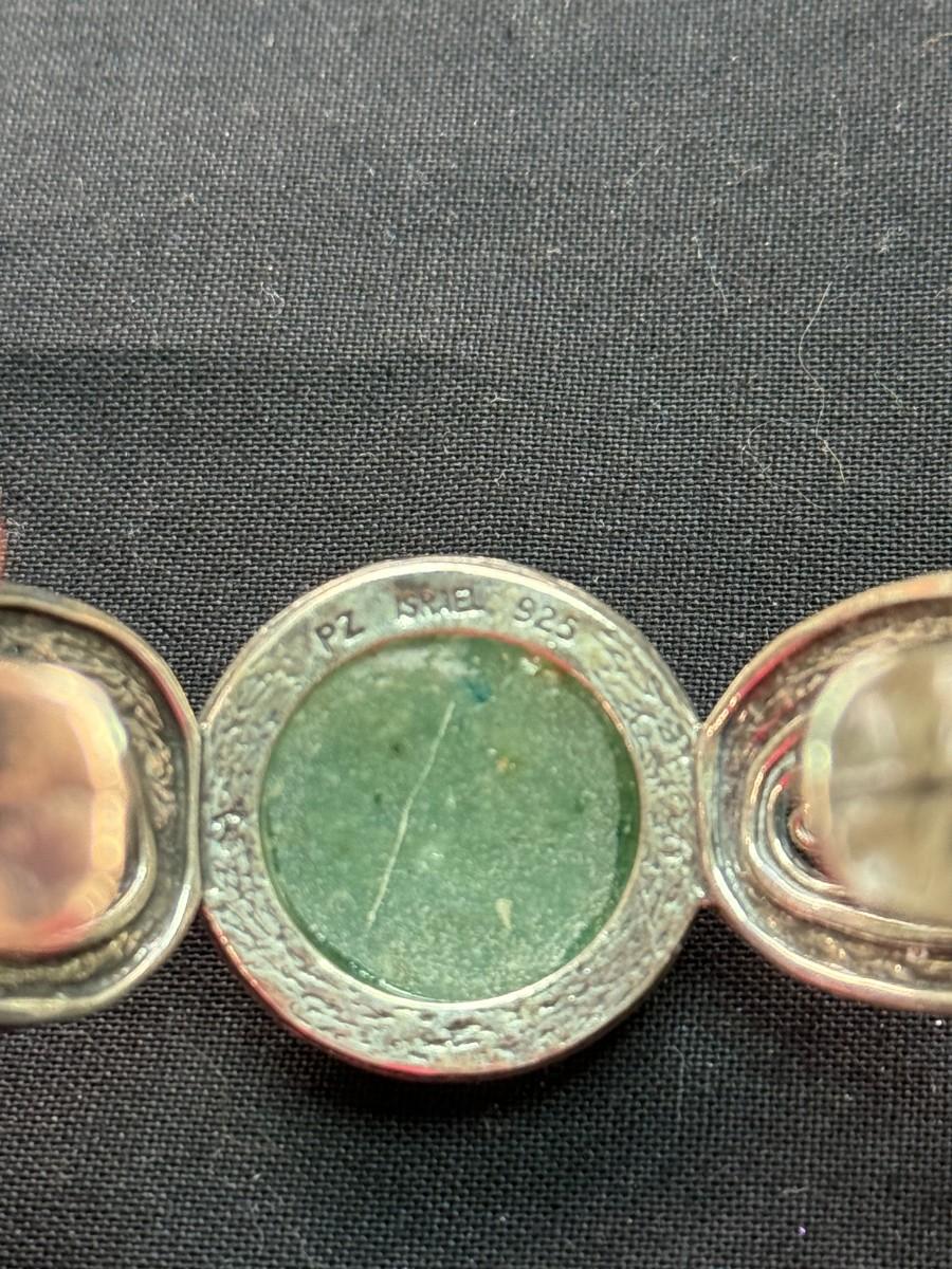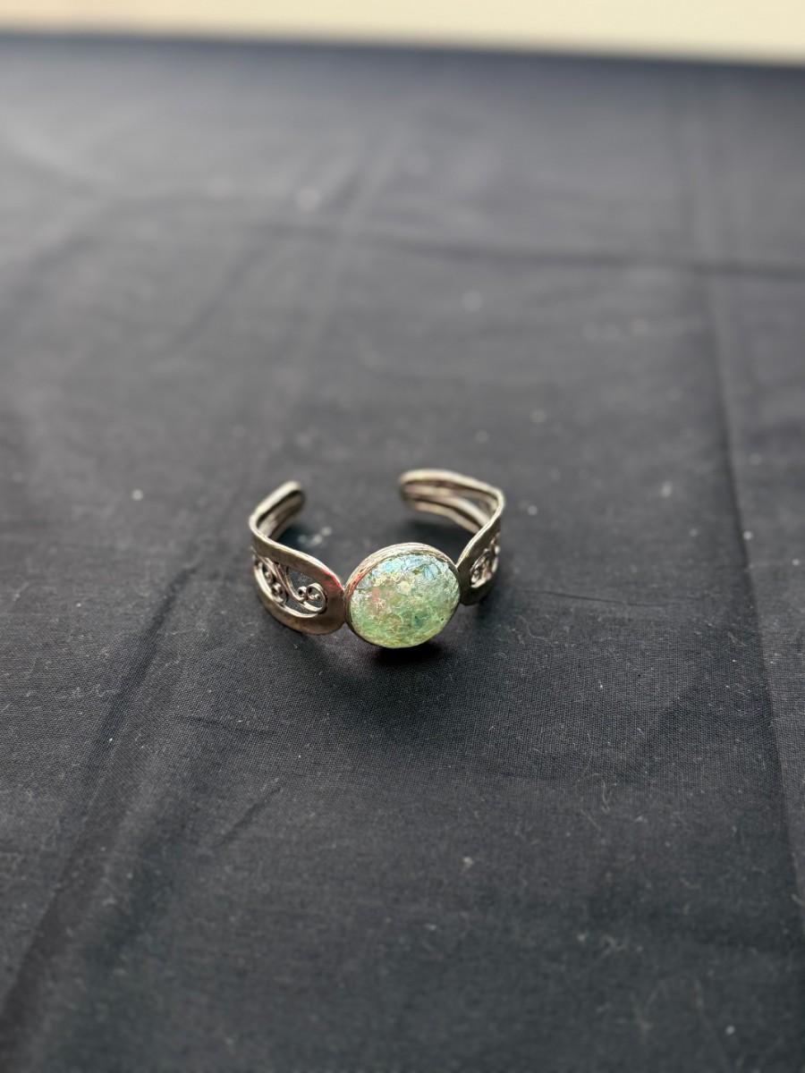 Paz Creations for Israel Sterling SILVER Cuff Bracelet with Roman Glass