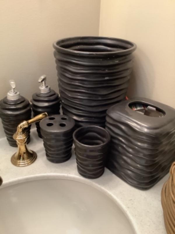 Black Waste Can, 2 Pump Dispensers, Tooth Brush Holder