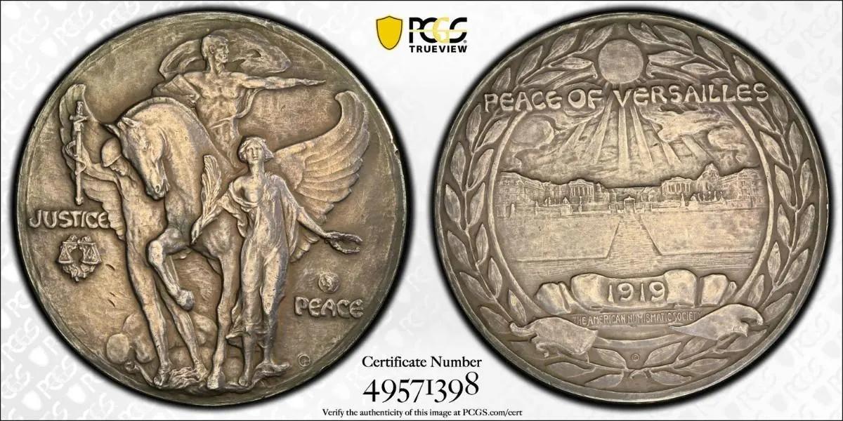 PCGS Certified 1919 AR Medal Johnson-33 Peace of Versailles Silver Medal #58/113 Made Population-1