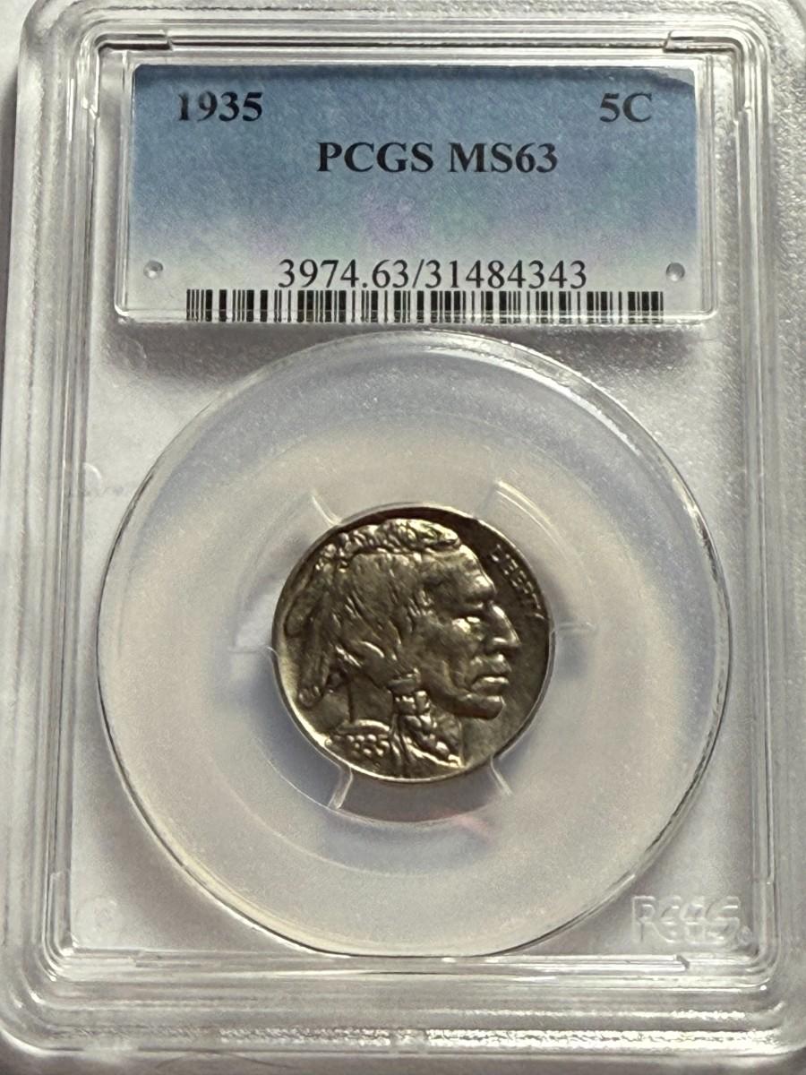 PCGS CERTIFIED 1935-P MS63 CONDITION BUFFALO NICKEL AS PICTURED. $5 DOMESTIC SHIPPING.
