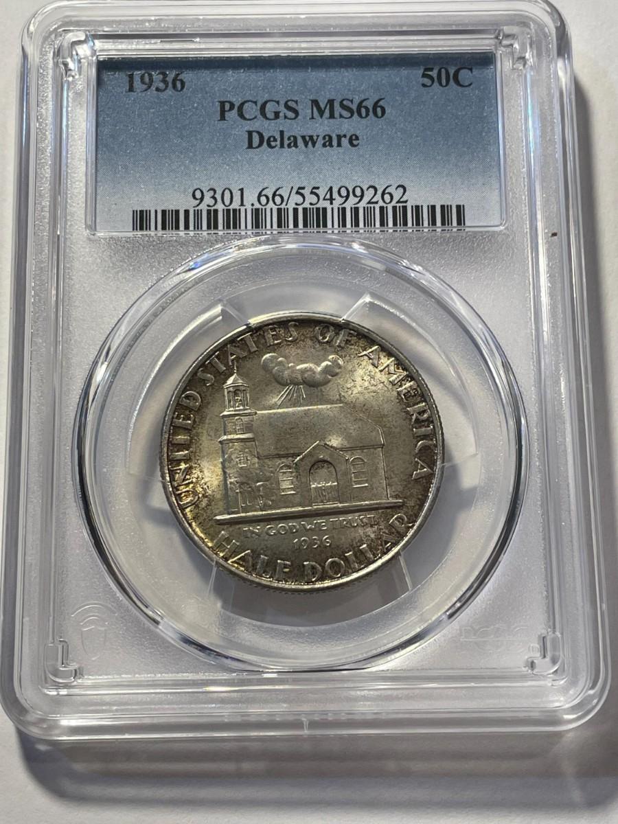 PCGS Certified 1936 MS66 Delaware Commemorative Silver Half Dollar as Pictured. $7 DOMESTIC SHIPPING.