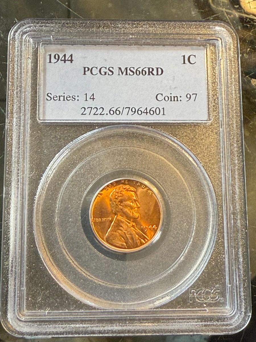 PCGS CERTIFIED 1944-P MS66 RED LINCOLN CENT AS PICTURED. $5 DOMESTIC SHIPPING.