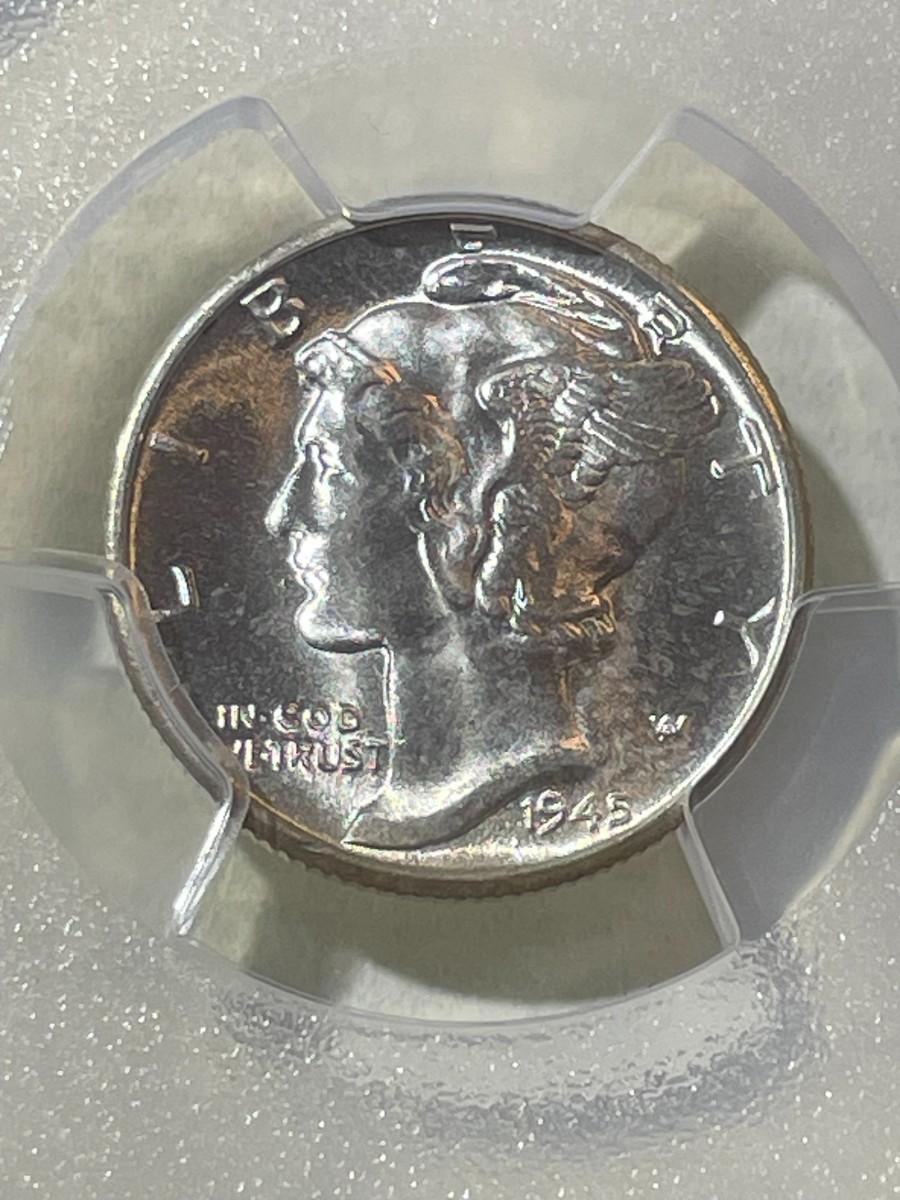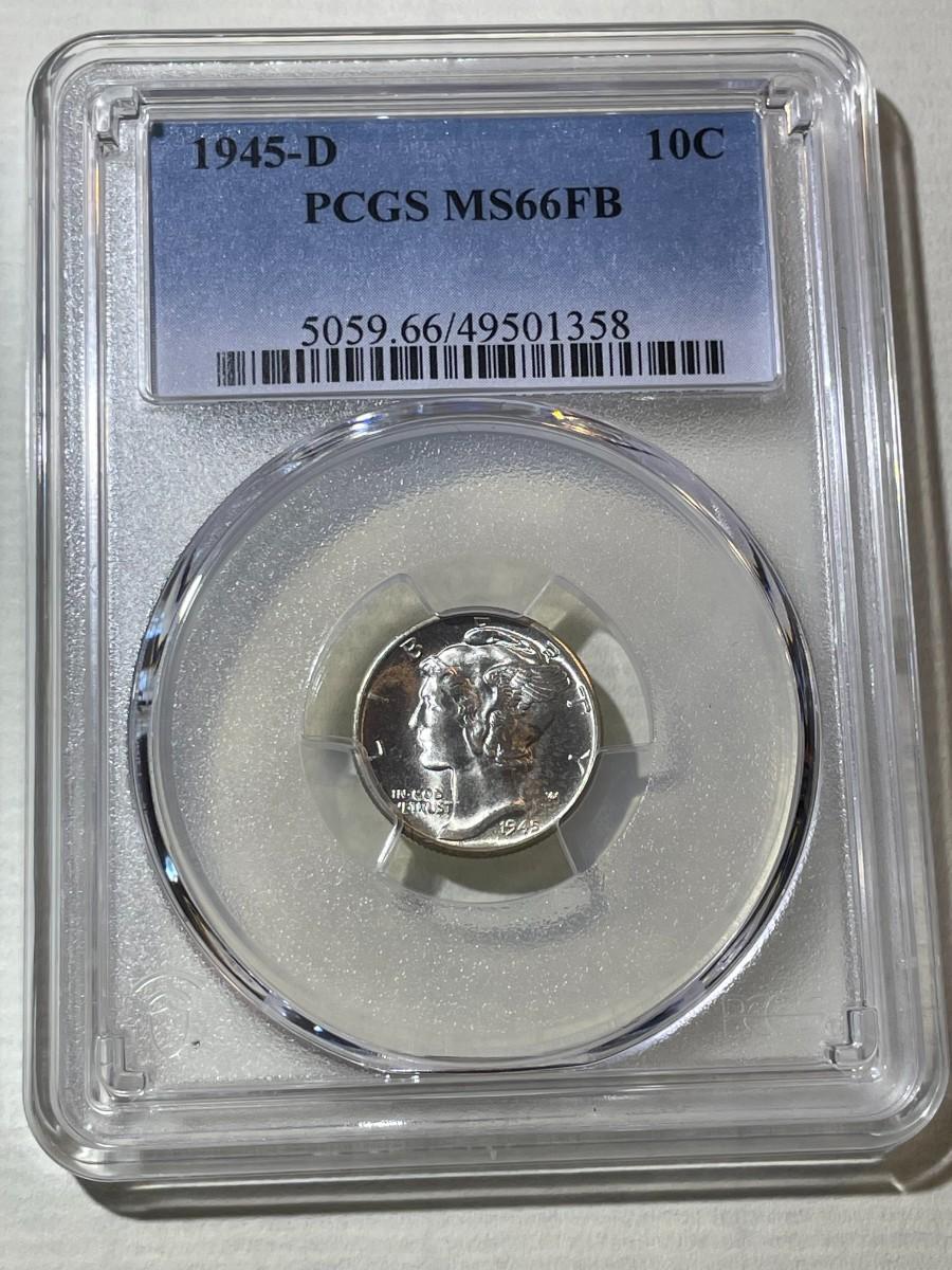 PCGS CERTIFIED 1945-D MS66 FULL BANDS WHITE MERCURY SILVER DIME AS PICTURED. $5 DOMESTIC SHIPPING.