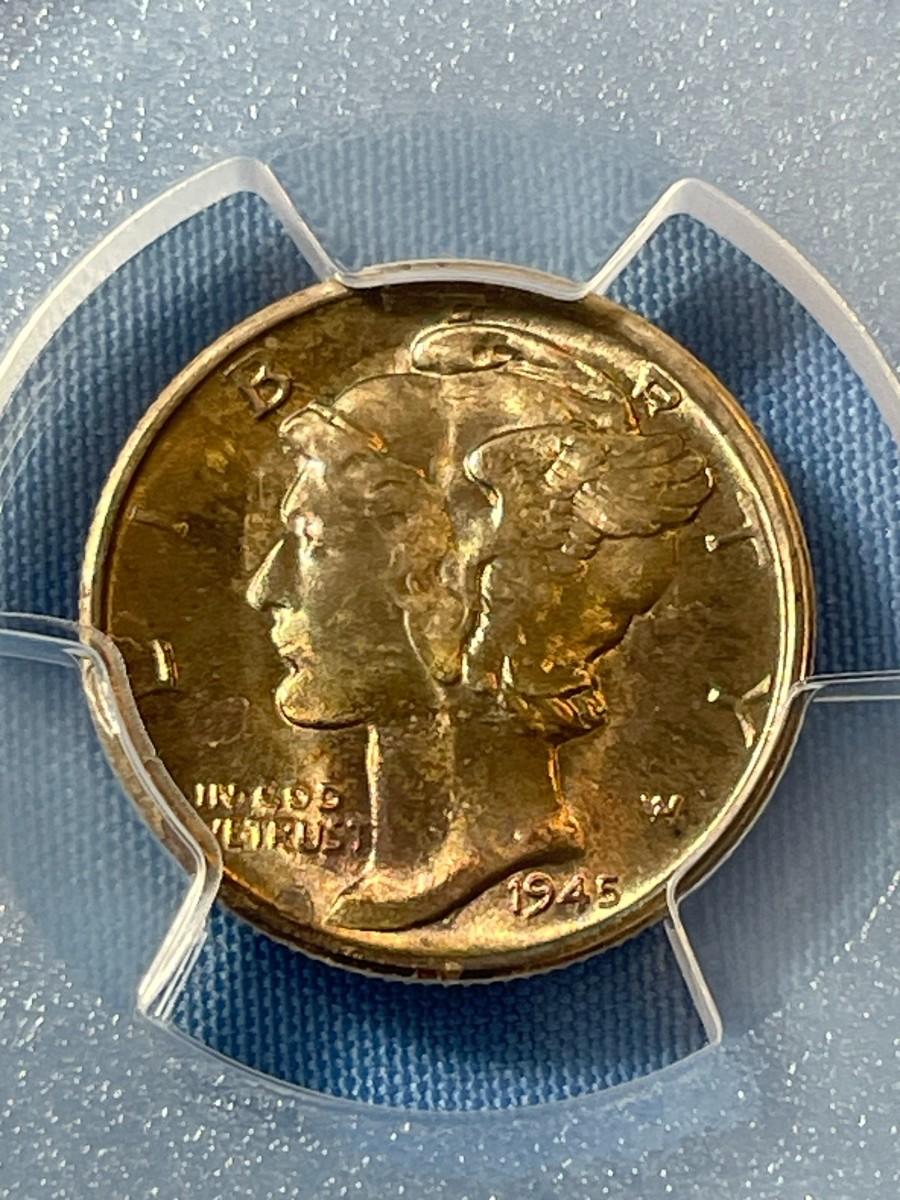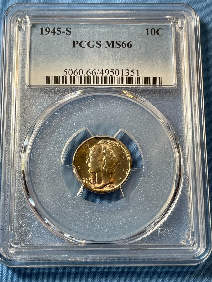 PCGS CERTIFIED 1945-S MS66 MERCURY SILVER DIME AS PICTURED. (COIN #1351). $5 DOMESTIC SHIPPING.