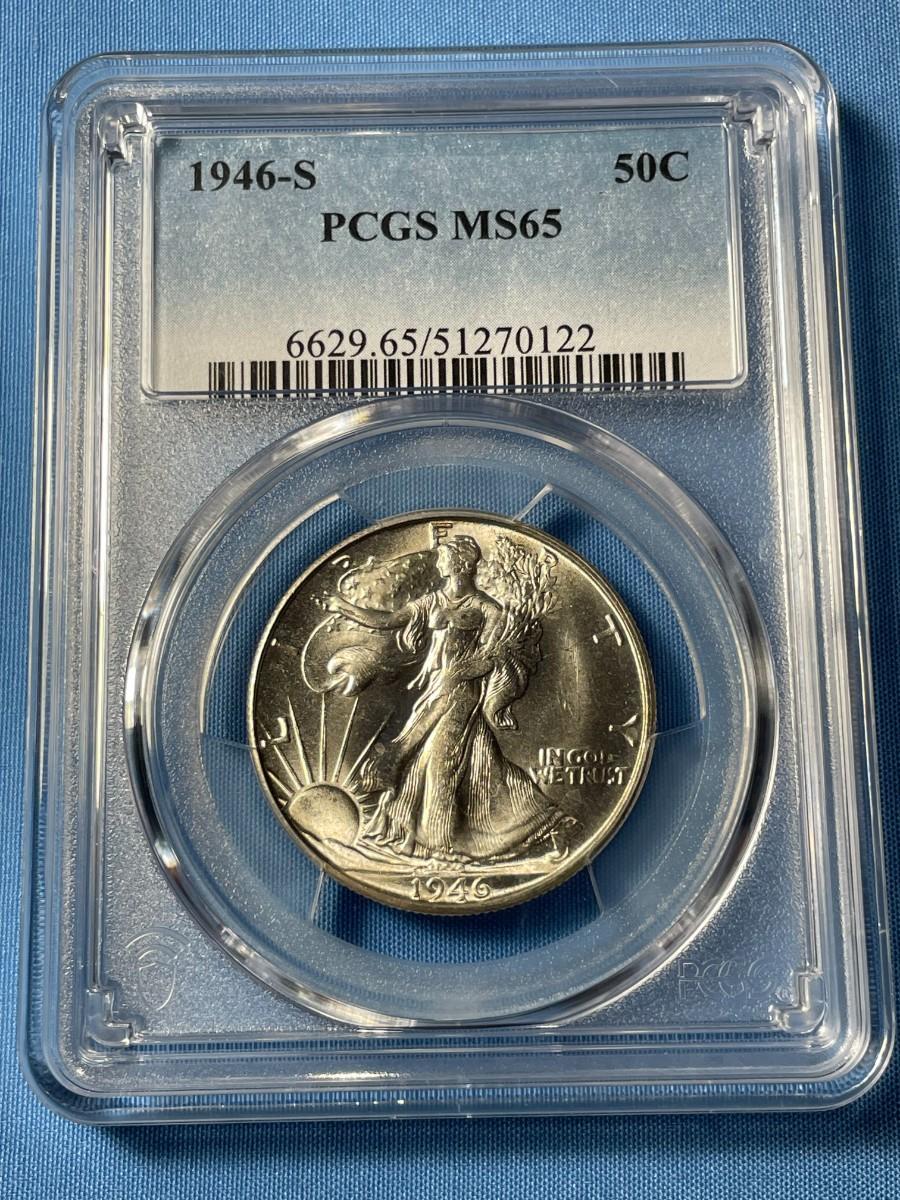 PCGS Certified 1946-S MS65 Walking Liberty Silver Half Dollar as Pictured. (Coin #0122). $5 DOMESTIC SHIPPING.