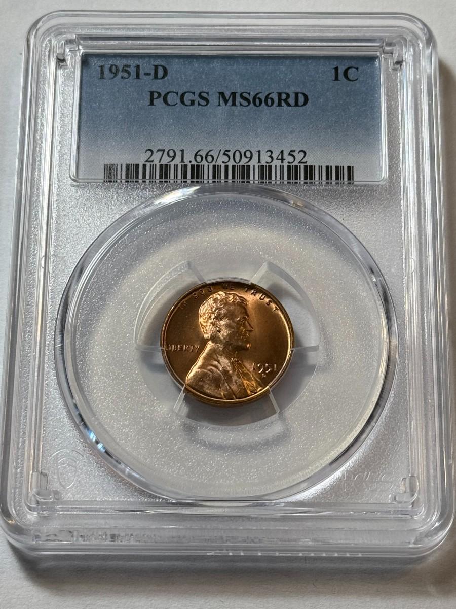 PCGS CERTIFIED 1951-D MS66 RED LINCOLN CENT AS PICTURED. $5 DOMESTIC SHIPPING.