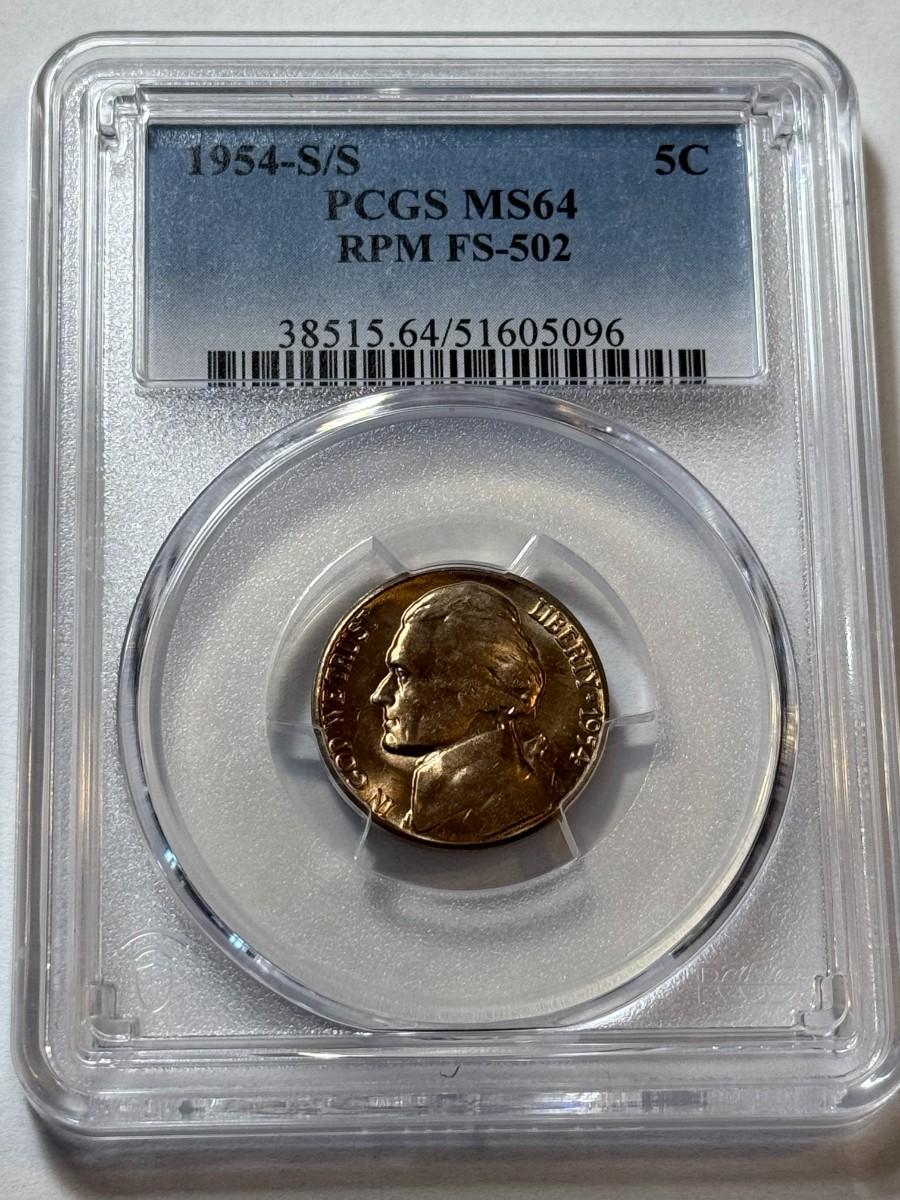 PCGS CERTIFIED 1954-S/S MS64 RPM-502 JEFFERSON NICKEL AS PICTURED. $5 DOMESTIC SHIPPING.