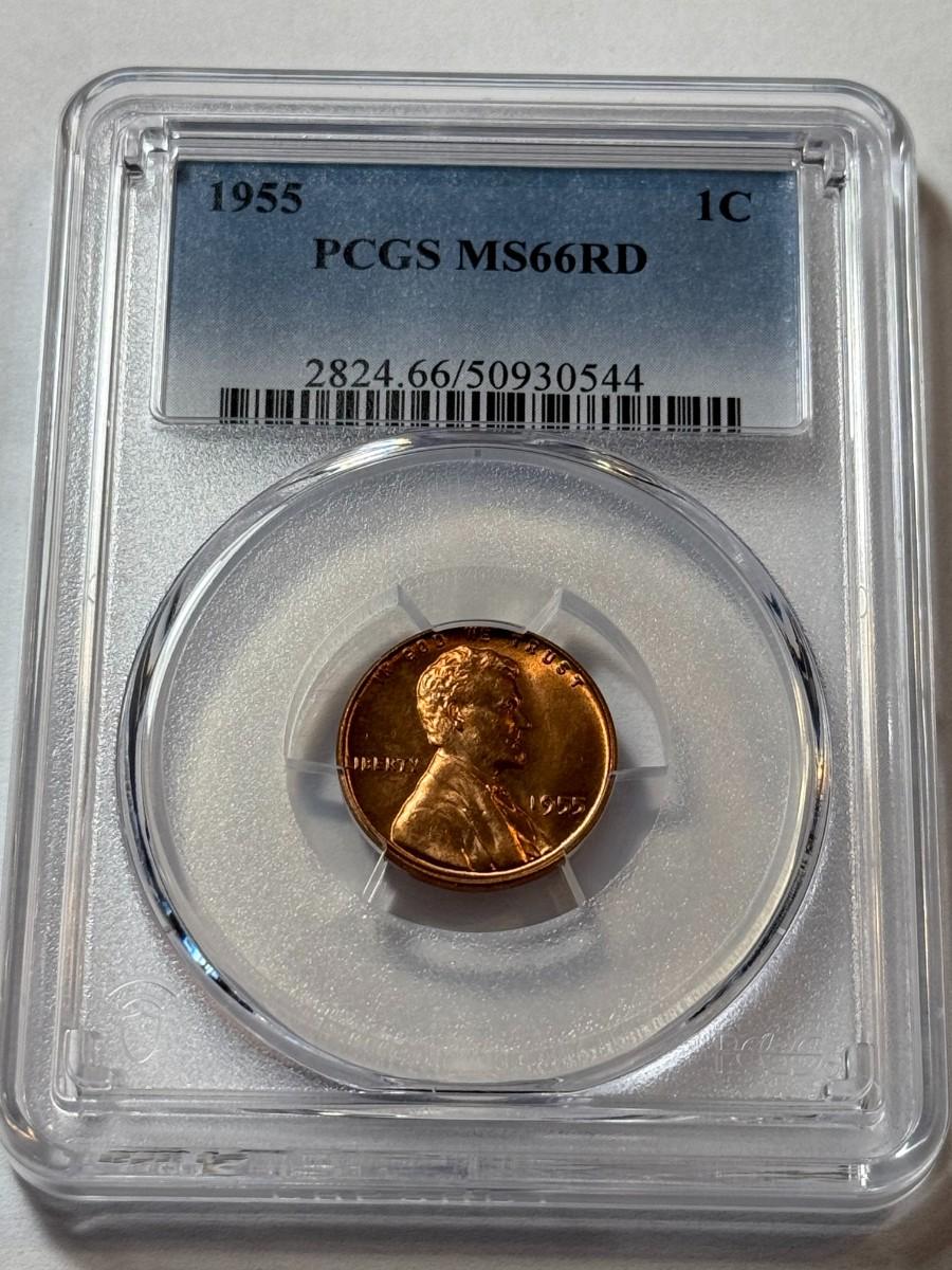 PCGS CERTIFIED 1955-P MS66 RED LINCOLN CENT AS PICTURED. $5 DOMESTIC SHIPPING.