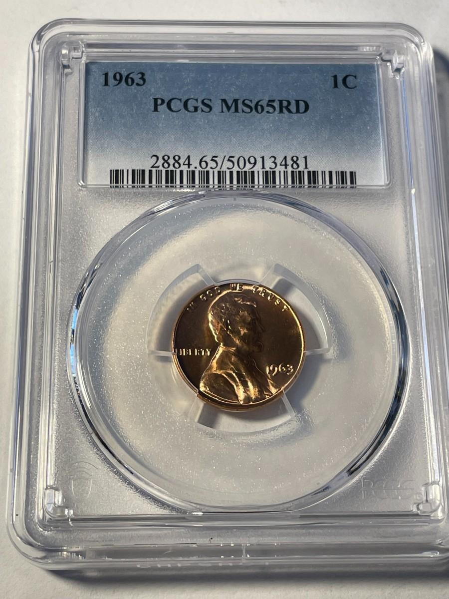 PCGS CERTIFIED 1963-P MS65 RED LINCOLN CENT FRESHLY GRADED. FREE DOMESTIC SHIPPING.