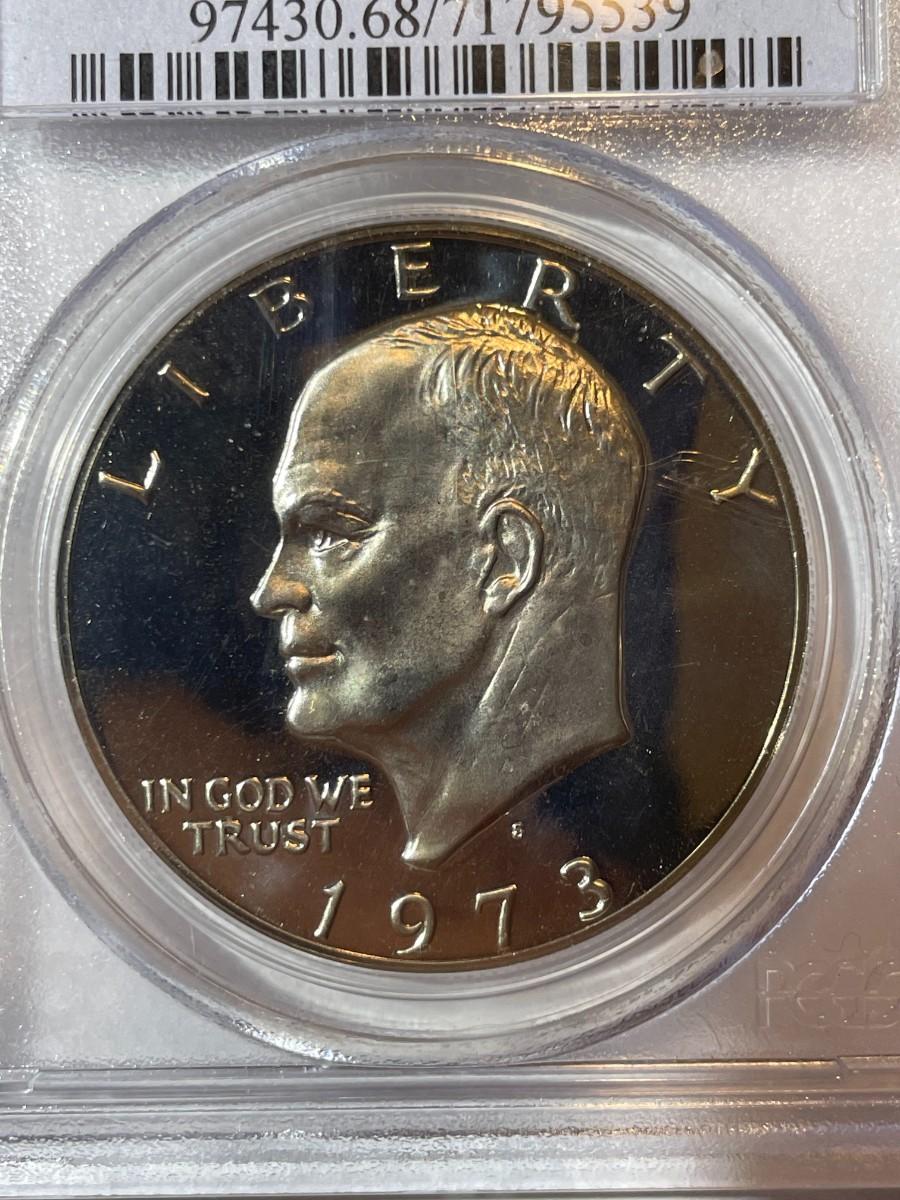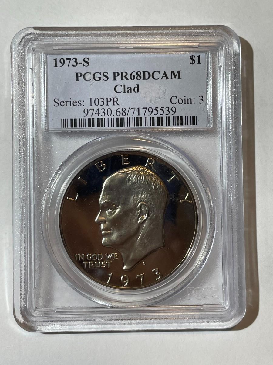 PCGS CERTIFIED 1973-S PROOF68 DEEP CAMEO CLAD EISENHOWER DOLLAR AS PICTURED. $5 DOMESTIC SHIPPING.