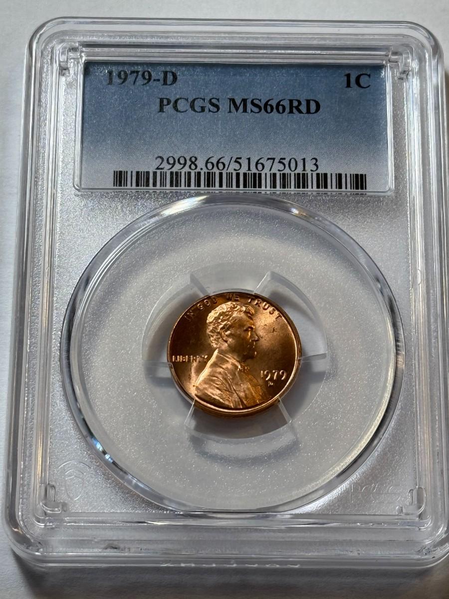 PCGS CERTIFIED 1979-D MS66 RED LINCOLN CENT AS PICTURED. $5 DOMESTIC SHIPPING.