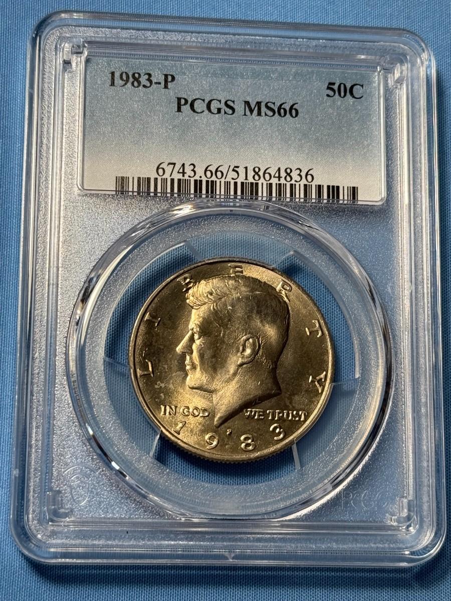 PCGS CERTIFIED 1983-P MS66 KENNEDY HALF DOLLAR COIN-TR7. (NO MINT SETS ISSUED 1983). GREYSHEET BID $55. $5 DOMESTIC SHIPPING.
