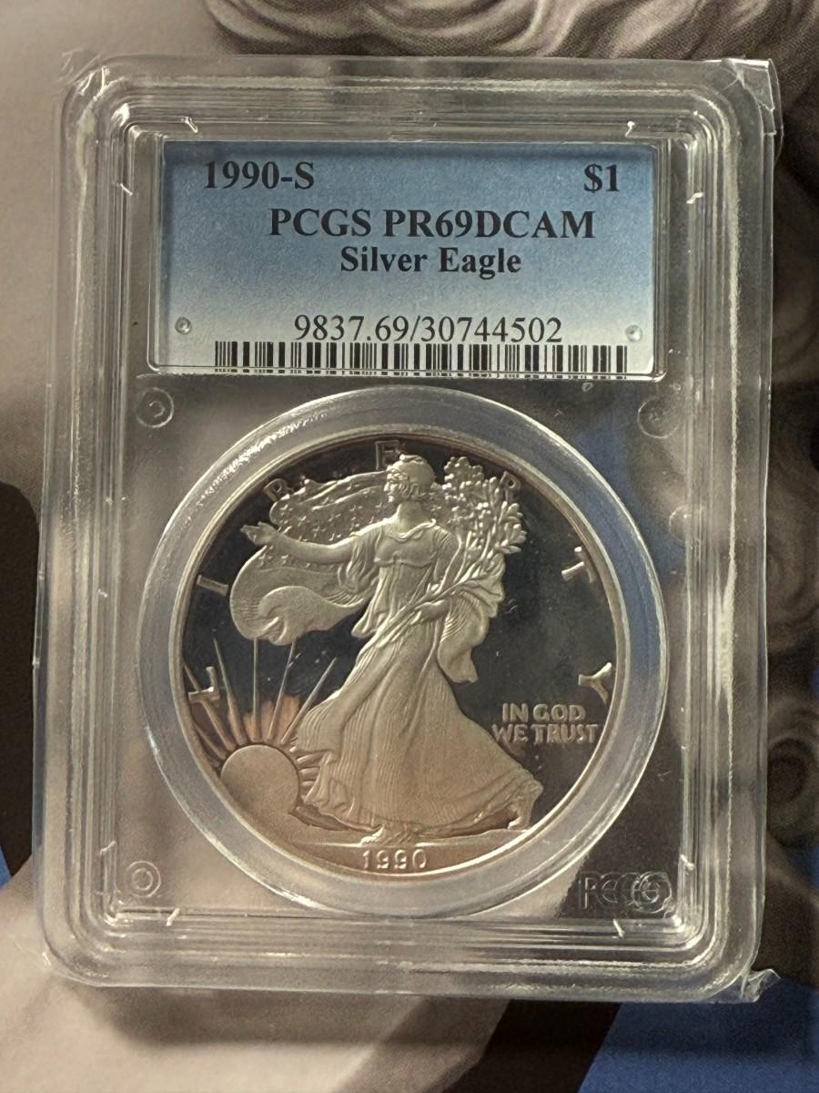 PCGS CERTIFIED 1990-S PROOF69 DEEP CAMEO SILVER EAGLE DOLLAR AS PICTURED. $5 DOMESTIC SHIPPING.
