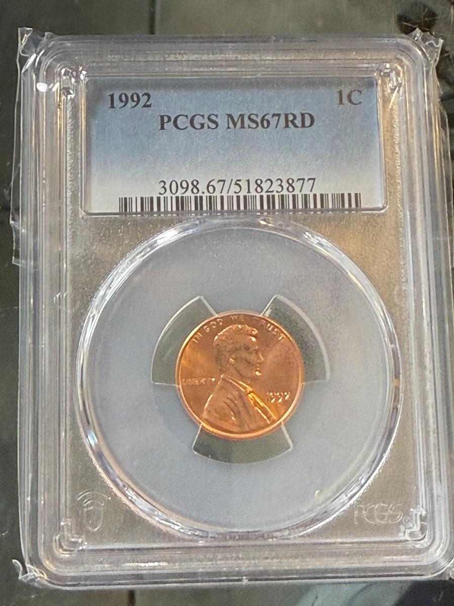 PCGS CERTIFIED 1992-P MS67 RED GRADED LINCOLN CENT AS PICTURED. $5 DOMESTIC SHIPPING.