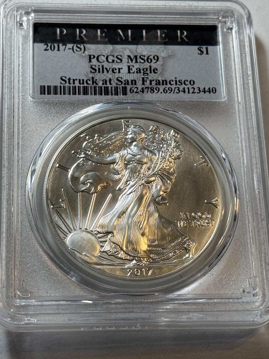 PCGS CERTIFIED 2017-(S) MS69 SILVER EAGLE DOLLAR 1-OUNCE .999 COIN AS PICTURED. $5 DOMESTIC SHIPPING.