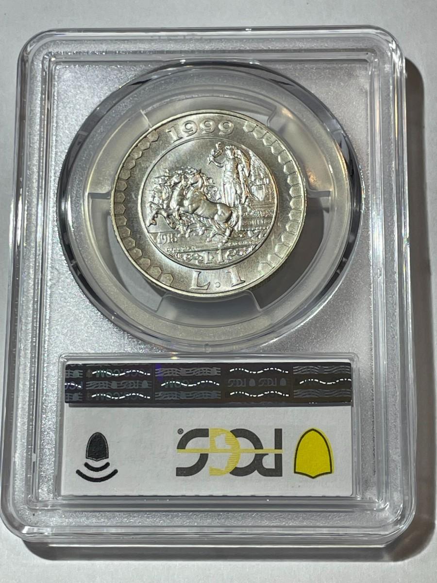 PCGS CERTIFIED ITALY 1999-R MS64 KM-205 LIRA OF 1915 SILVER COIN AS PICTURED. $5 DOMESTIC SHIPPING.