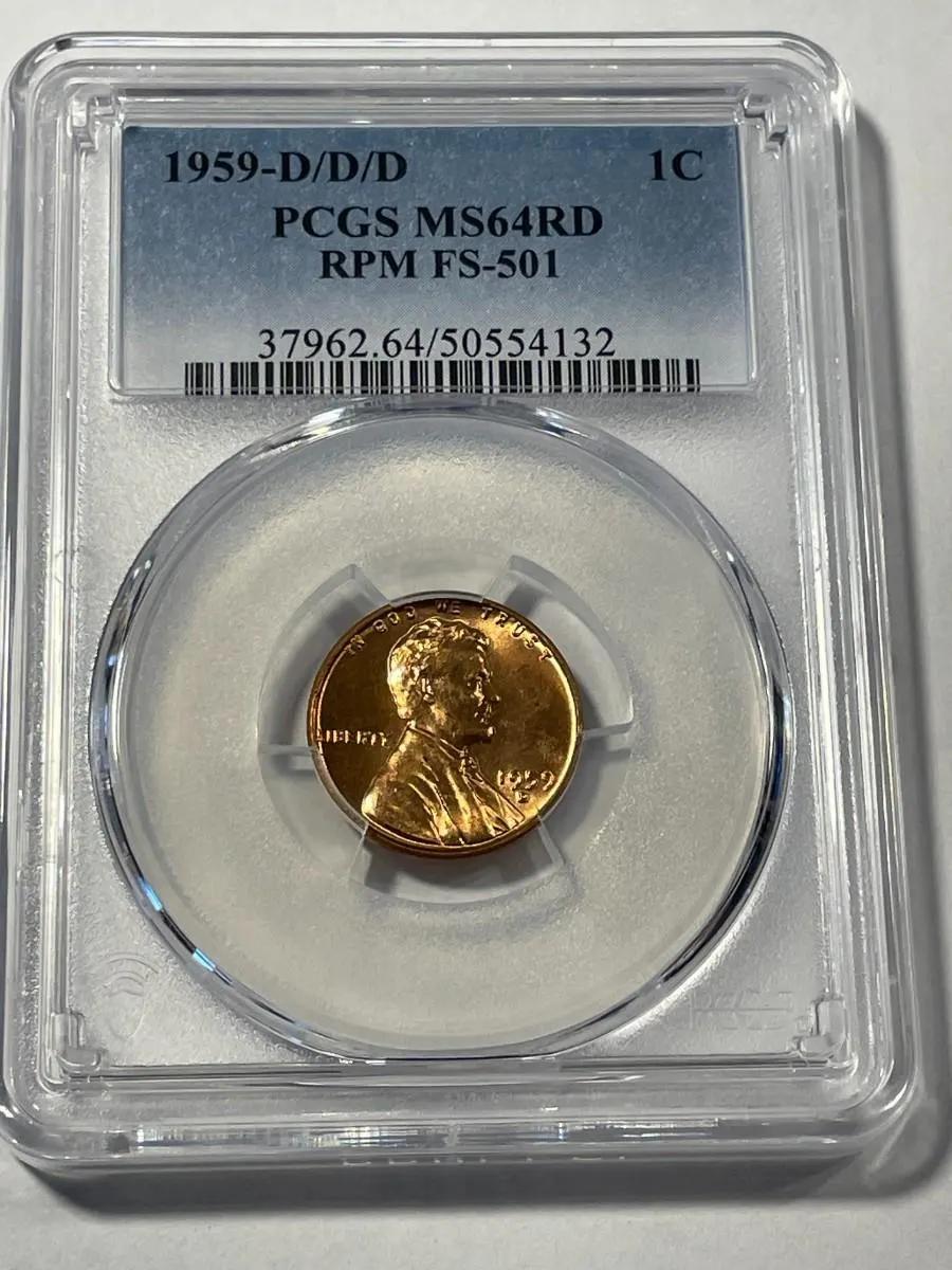 PCGS CERTIFIED Scarce 1959-D/D/D MS64 Red RPM FS-501 Lincoln Cent as Pictured. $5 DOMESTIC SHIPPING.