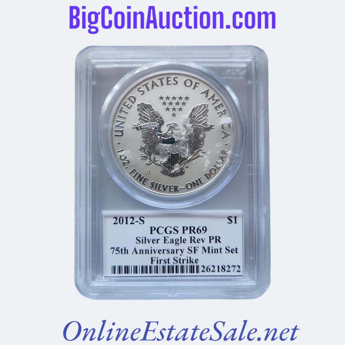 2012- S PCGS PR69 Silver Eagle Rev PR 75th Anniversary SF Mint Set First Strike.
