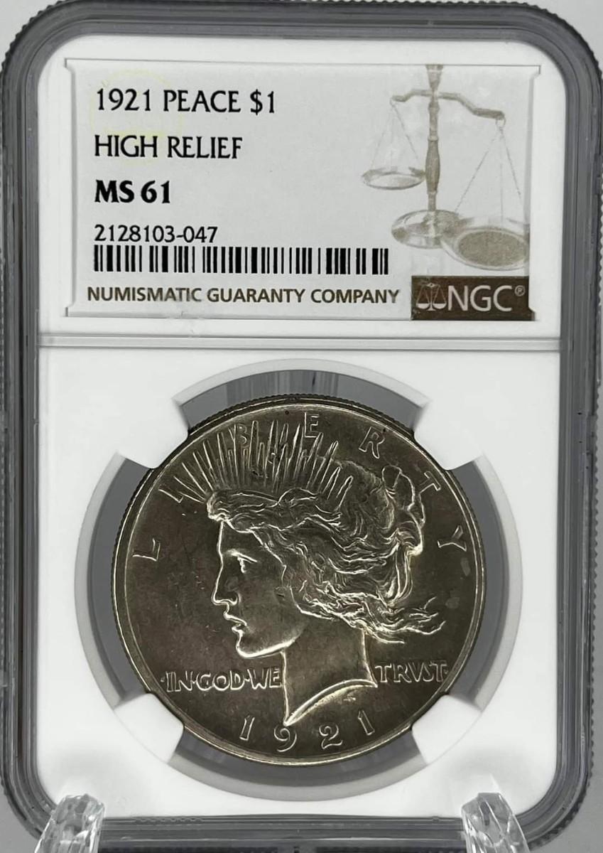 RARE 1921 Peace silver dollar  MS 61 High relief