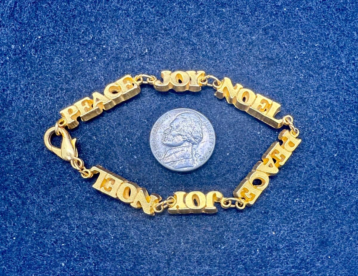 Peace-Joy-Noel Chunky Goldtone Bracelet