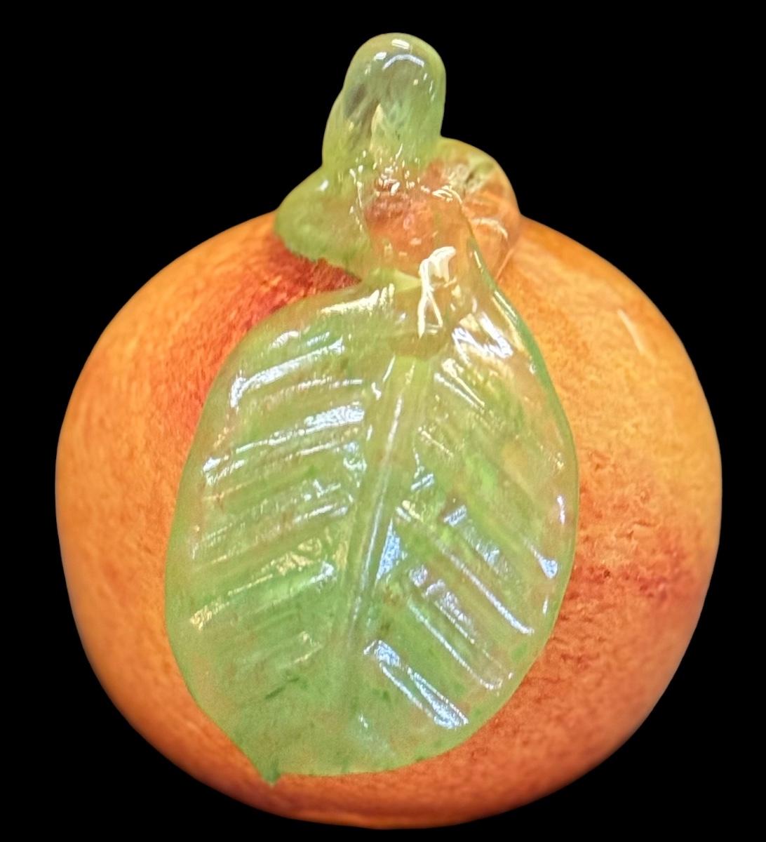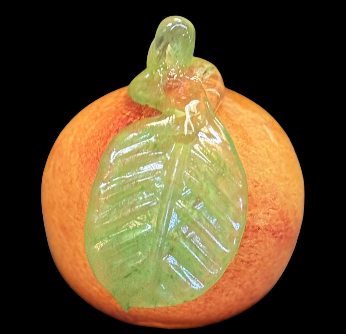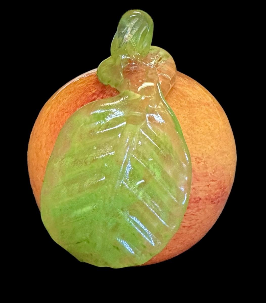 This gorgeous hand blown glass life size apple has fine detailing and soft red color.