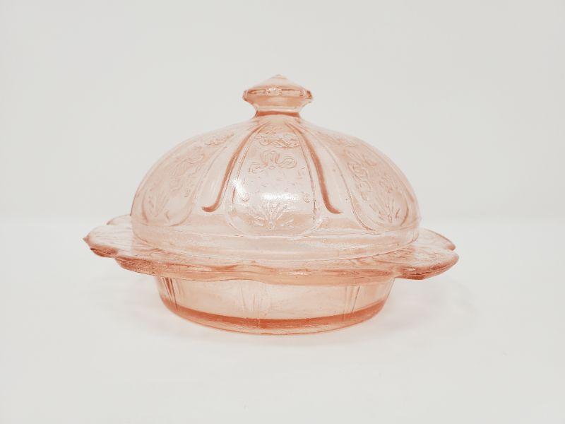 PEACH DEPRESSION GLASS BUTTER DISH